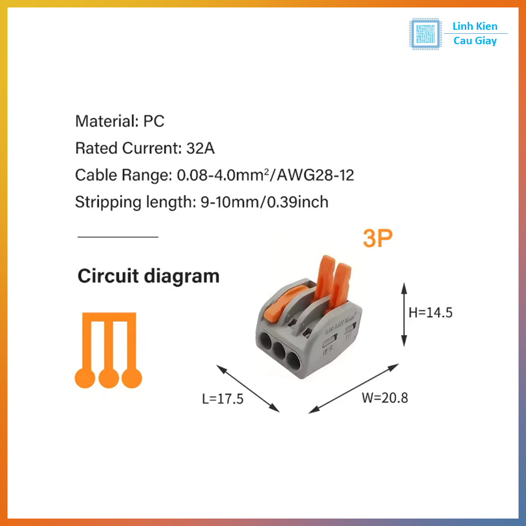PCT-213 là jack nối dây nhanh 3P (3 dây) kiểu cần gạt/kẹp lẫy giúp nối – chia dây cực nhanh, chắc chắn mà không cần siết vít. Chỉ cần tuốt dây 9–10mm, mở cần gạt, cắm dây vào và gạt xuống là khóa chặt. PCT-213 phù hợp dùng trong điện dân dụng, đèn LED, hộp nối, tủ điện mini, đấu nối rẽ nhánh 1→2 hoặc nối 3 dây chung một điểm, rất tiện thi công và bảo trì.