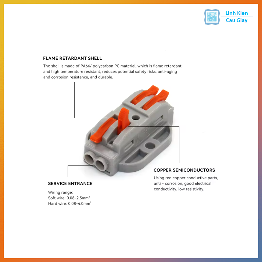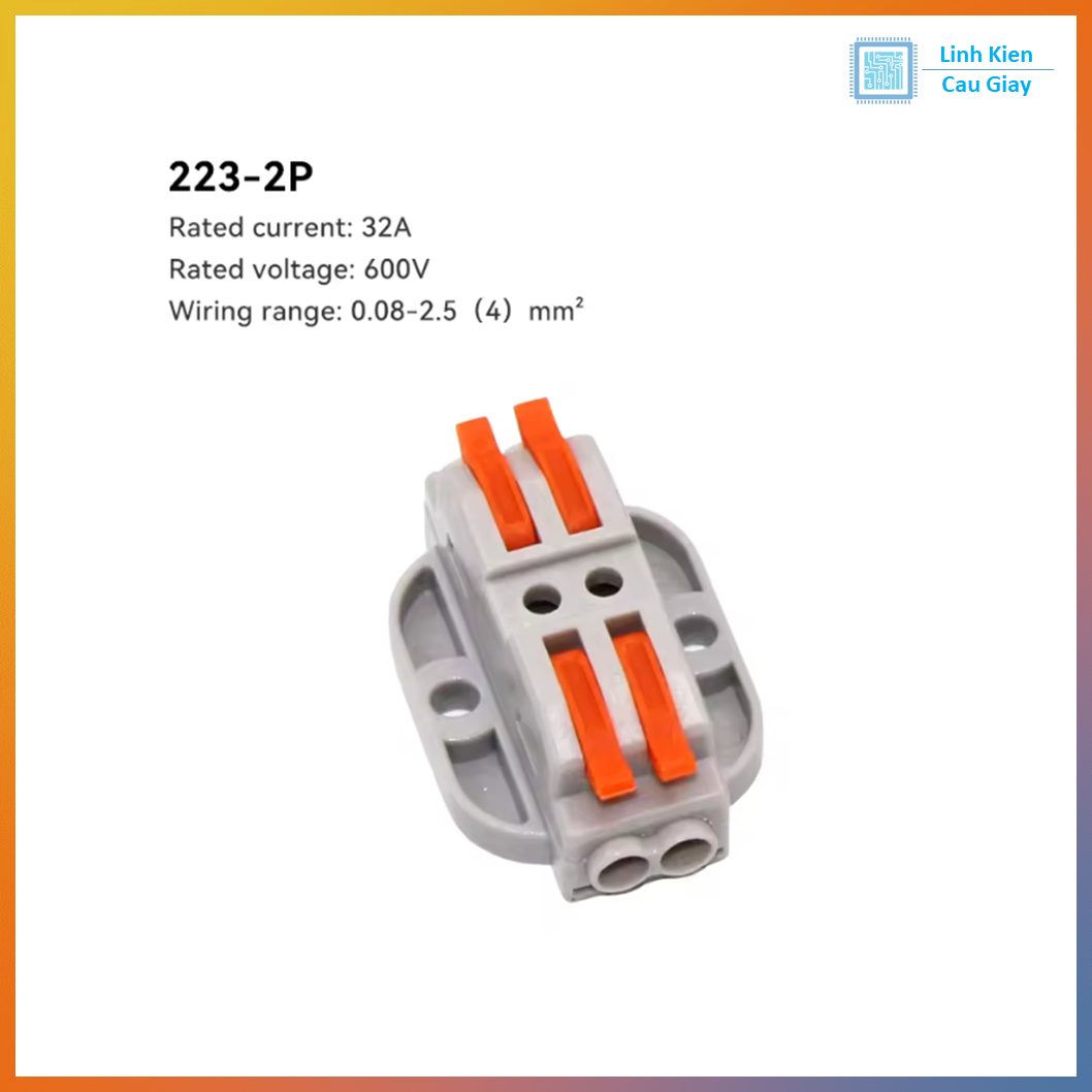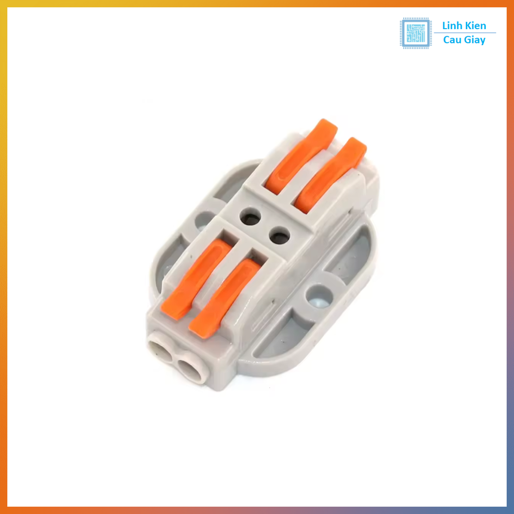 SPL-22-2 là đầu nối dây điện nhanh kiểu nhấn/kẹp lò xo giúp nối dây cực tiện mà không cần vít hay hàn. Chỉ cần gạt/nhấn cần cam màu cam để mở kẹp, đưa dây vào rồi đóng lại là dây được giữ chắc chắn. Phù hợp nối dây trong điện dân dụng, đèn LED, hộp nối, tủ điện mini, DIY Arduino/IoT, quạt, motor, nguồn… Phiên bản trong ảnh là dạng có đế bắt vít giúp cố định lên bề mặt/thiết bị, gọn gàng và an toàn hơn khi đi dây.