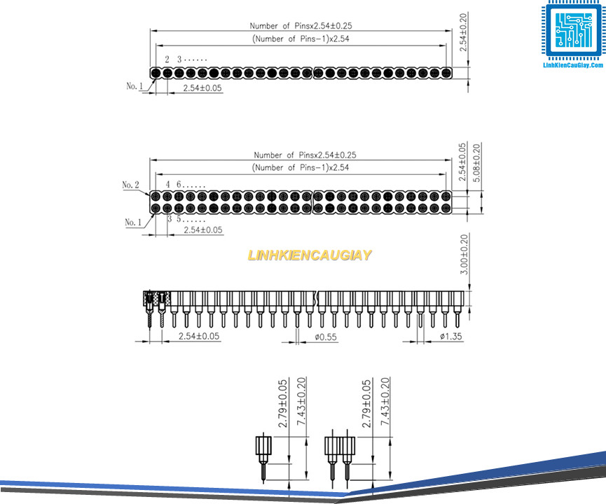 Jump led đơn cái 2.54mm 1x40P thẳng