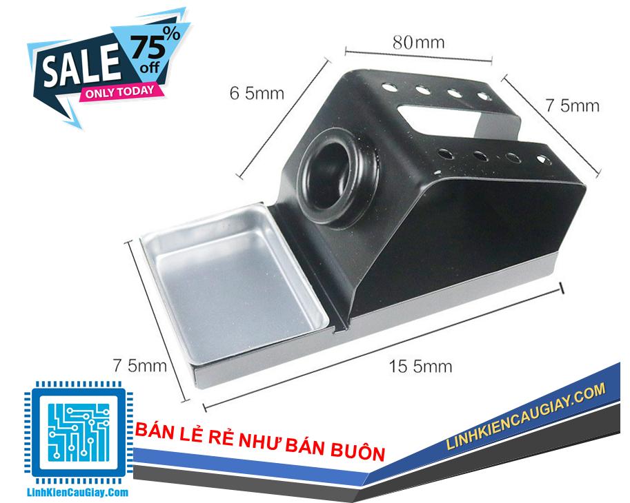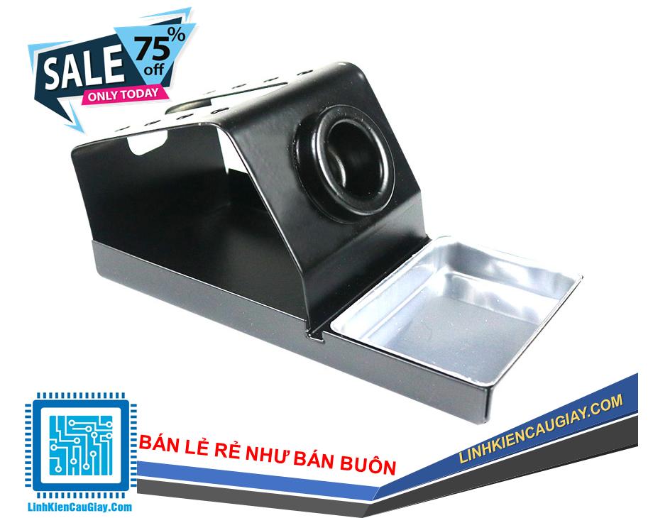 Đế gác tay hàn có lỗ để mũi hàn cho trạm hàn bằng sắt sơn tĩnh điện đen và nhựa. Có 2 hàng lỗ để mũi hàn tiện lợi khi thay mũi hàn. *Có thể có hoặc không có miếng chùi dao hàn.