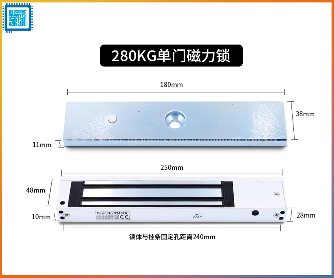 - Kích thước khóa: 250L x 42W x 25H(mm)