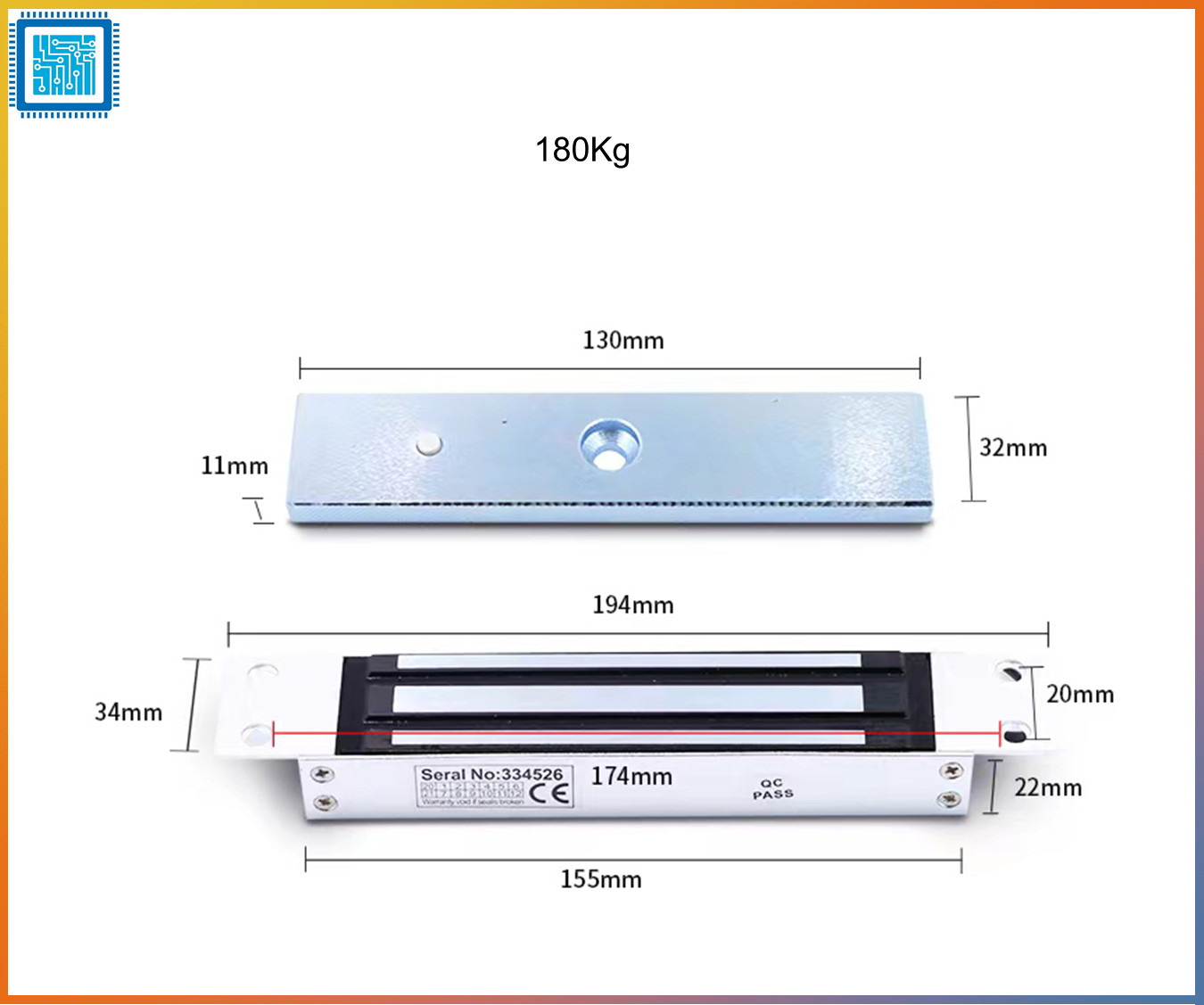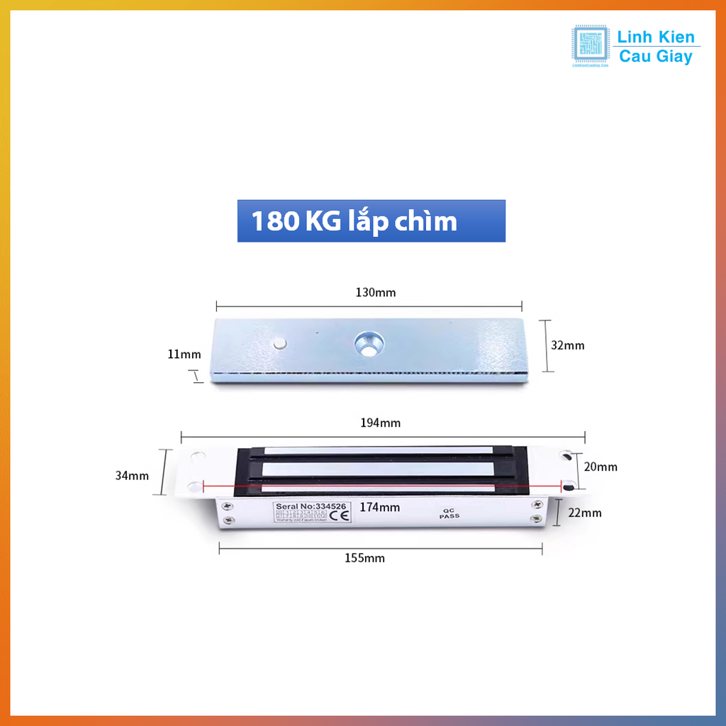 - Kích thước má từ: 180L x 39W x 11.5H(mm)