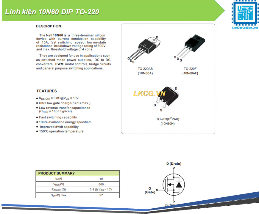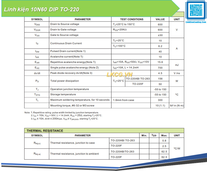 Linh kiện 10N60 DIP TO-220