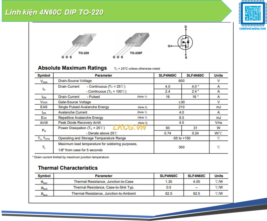 Linh kiện 4N60C DIP TO-220