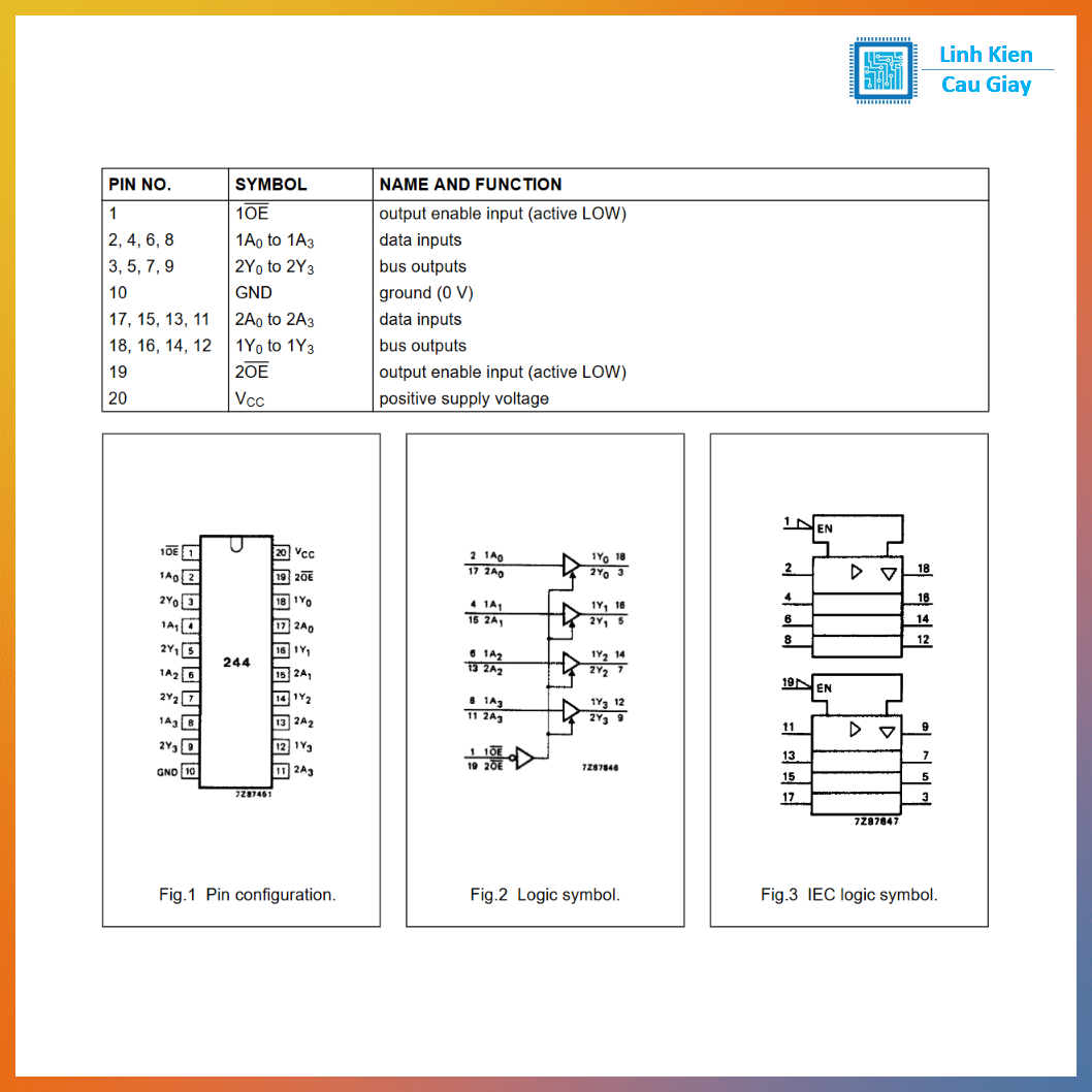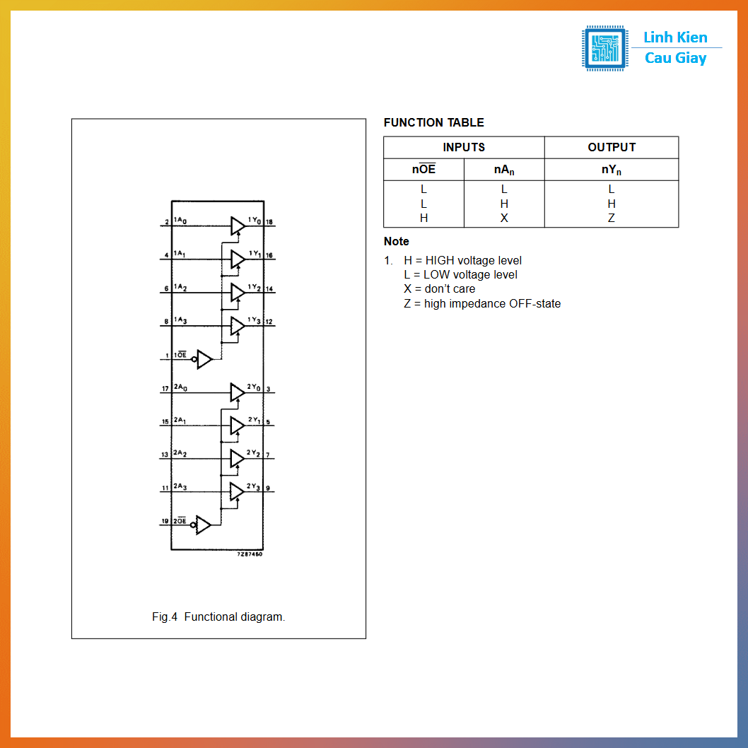 74HC244 gồm 8 bộ đệm không đảo, chia thành 2 nhóm 4 kênh