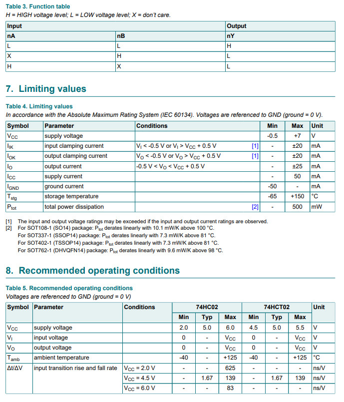 Cấu tạo bên trong ic số 74HC02 có bốn cổng logic NOR, mỗi cổng có 2 ngõ vào và 1 ngõ ra. IC 74HC00 được sản xuất theo công nghệ Cmos, là một mạch tích hợp được xây dựng từ các Mosfet và một số điện trở phụ trợ. IC hoạt động tốt nhất ở điện áp 5V.Các hoạt động của IC này là rất đơn giản để hiểu nếu chúng ta hiểu được hoạt động của cổng NOR.