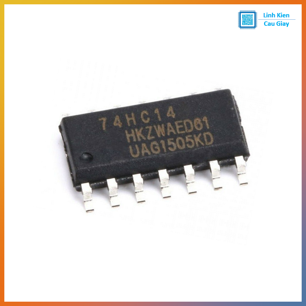 IC 74HC14 là IC logic họ 74HC gồm 6 cổng đảo (NOT) có ngưỡng Schmitt Trigger. Nhờ đặc tính Schmitt Trigger (có hysteresis), 74HC14 lọc nhiễu tốt, biến tín hiệu “lưng chừng/nhấp nháy” thành mức logic rõ ràng, rất hợp để chống dội phím (debounce), tạo xung dao động RC, làm sạch tín hiệu cảm biến, và đệm tín hiệu trong mạch số.