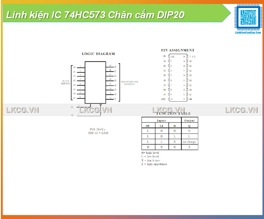 IC 74HC573 là 1 vi mạch chốt dữ liệu. Đầu vào của 74HC574 tương thích với đầu ra chuẩn CMOS, trở kéo, bên cạnh đó IC tương thích với đầu ra LS/ALSTTL.