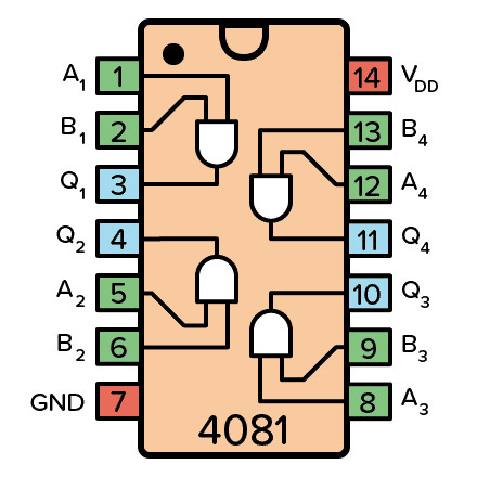 CD4081 là một chip CMOS có bốn cổng AND. Cổng AND là cổng logic chỉ cho đầu ra CAO khi tất cả các đầu vào của nó là CAO.