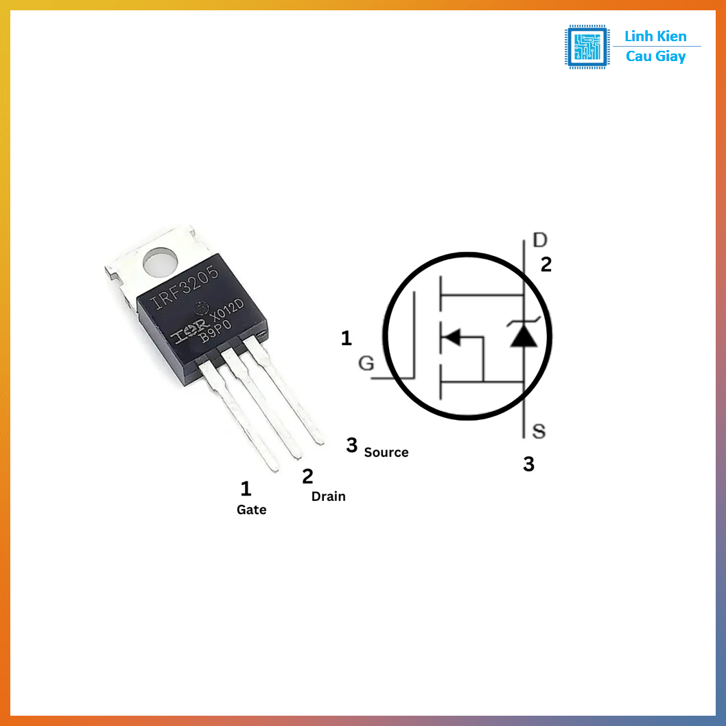 #IRF3205 #MOSFET #MOSFETCôngSuất #MOSFETKênhN #TO220 #55V #110A #điệnTử #linhKiệnĐiệnTử #linhKiệnChếTạo #nguồnXung #điềuKhiểnĐộngCơ #inverter #robotSTEM #LinhKiệnCầuGiấy