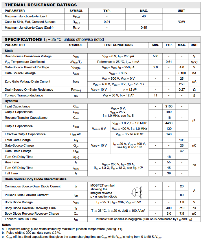 Linh kiện IRFP460A DIP TO-247 500V 20A kênh N