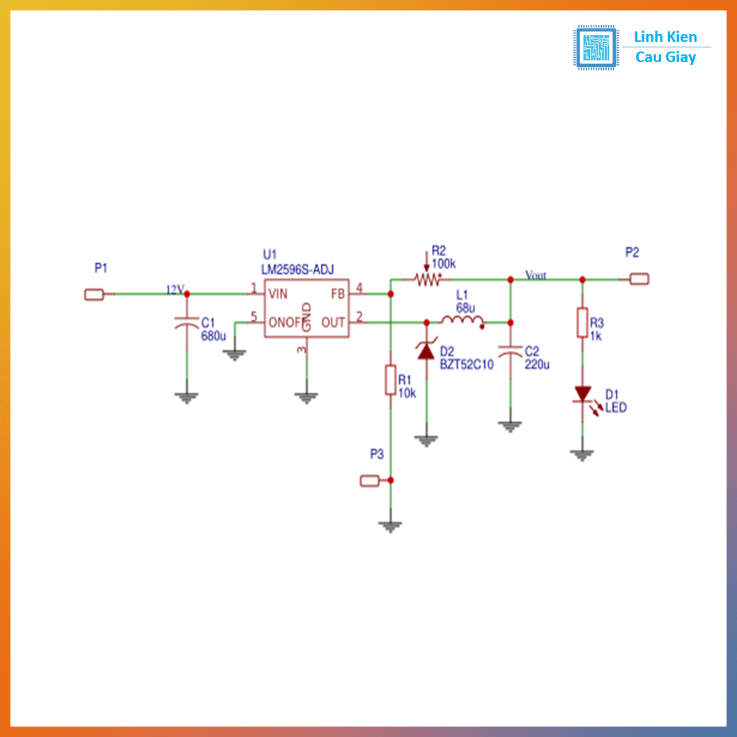 R1 thường chọn 1k–2k, tính R2 theo Vout mong muốn