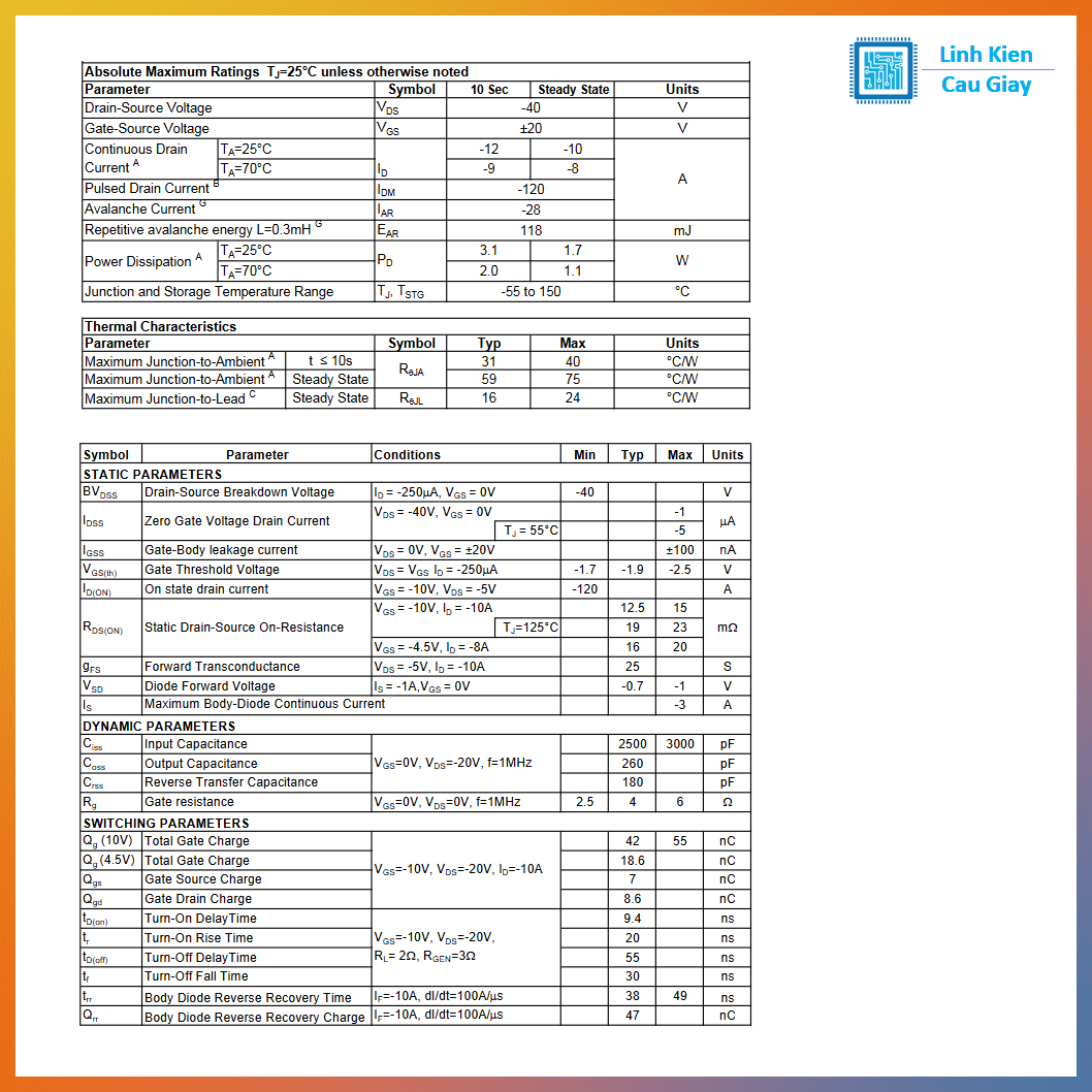 #LinhKiệnĐiệnTử #Mosfet #MôsẹtKênhP #AO4485 #SOP8 #SOIC8 #MosfetDán #CôngTắcTải #LoadSwitch #CôngTắcNguồn #HighSide #MạchNguồn #NguồnDCDC #SửaChữaĐiệnTử #DIYĐiệnTử