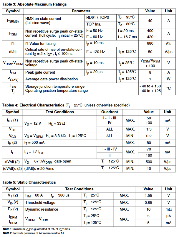 Triac công suất BTA41-600B 40A điều khiển tải AC