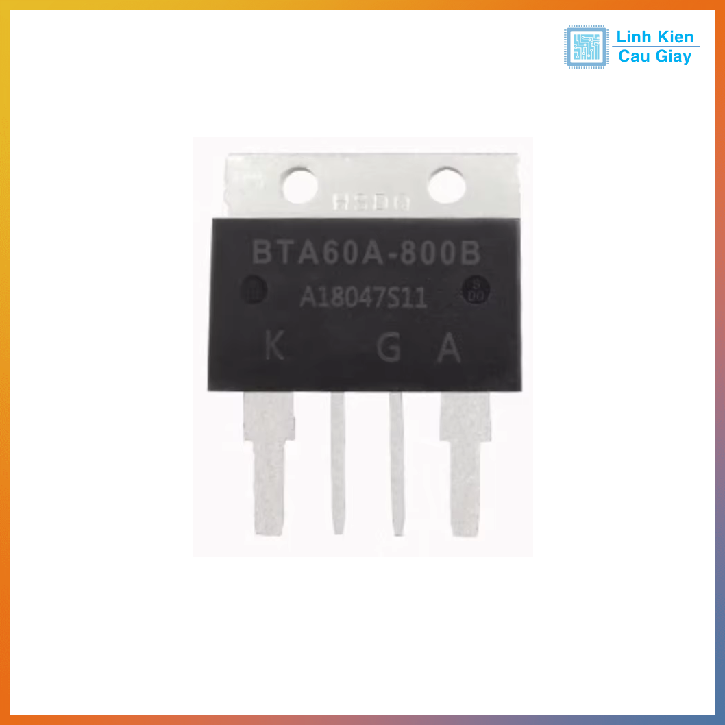 Triac BTA60A-800B là linh kiện bán dẫn dạng Triac hai chiều, thuộc dòng BTA của hãng Inchange/Semiwill, đóng gói TOP3 cách điện. Thiết bị được thiết kế dành cho các ứng dụng điều khiển pha điện xoay chiều (AC) như dimmer, điều tốc động cơ AC, bộ điều khiển nhiệt độ, relay trạng thái rắn (SSR), v.v.
