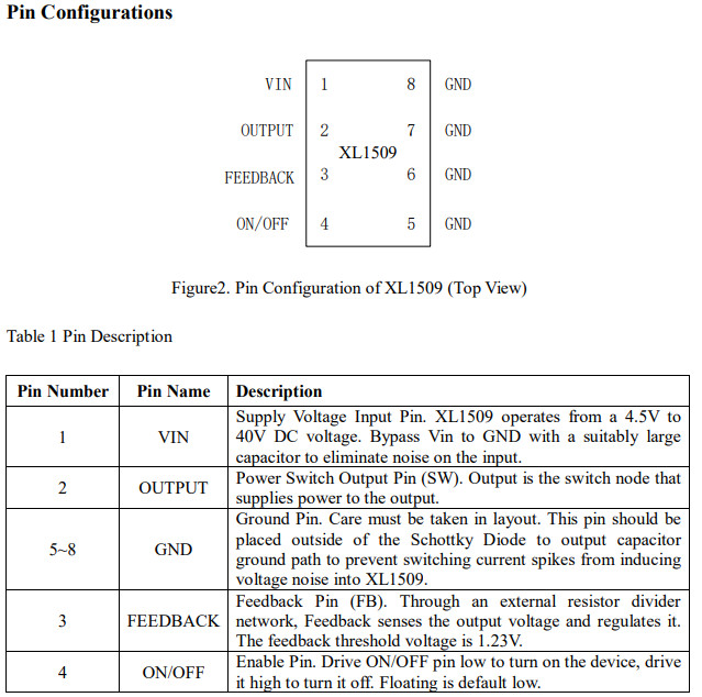 XL1509-5 là IC hạ áp(buck) DC-DC với tần số băm xung cao lên đến 150 KHz cho khả năng chịu tải cao lên tới 2A và có gợn thấp. Với phạm vi điện áp đầu vào rộng từ 4,5-40V. Bên trong IC XL1509-5 được thiết kế tối ưu hóa để các transitor công suất tích hợp trong đó được hiệu quả cao, ngoài ra IC XL1509-5 còn có chức năng bảo vệ quá nhiệt.