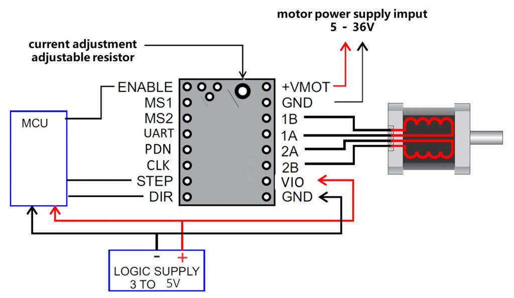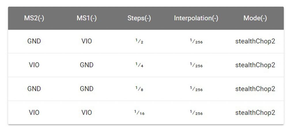MS1, MS2: chọn microstep (hoặc cấu hình qua UART tùy phiên bản).