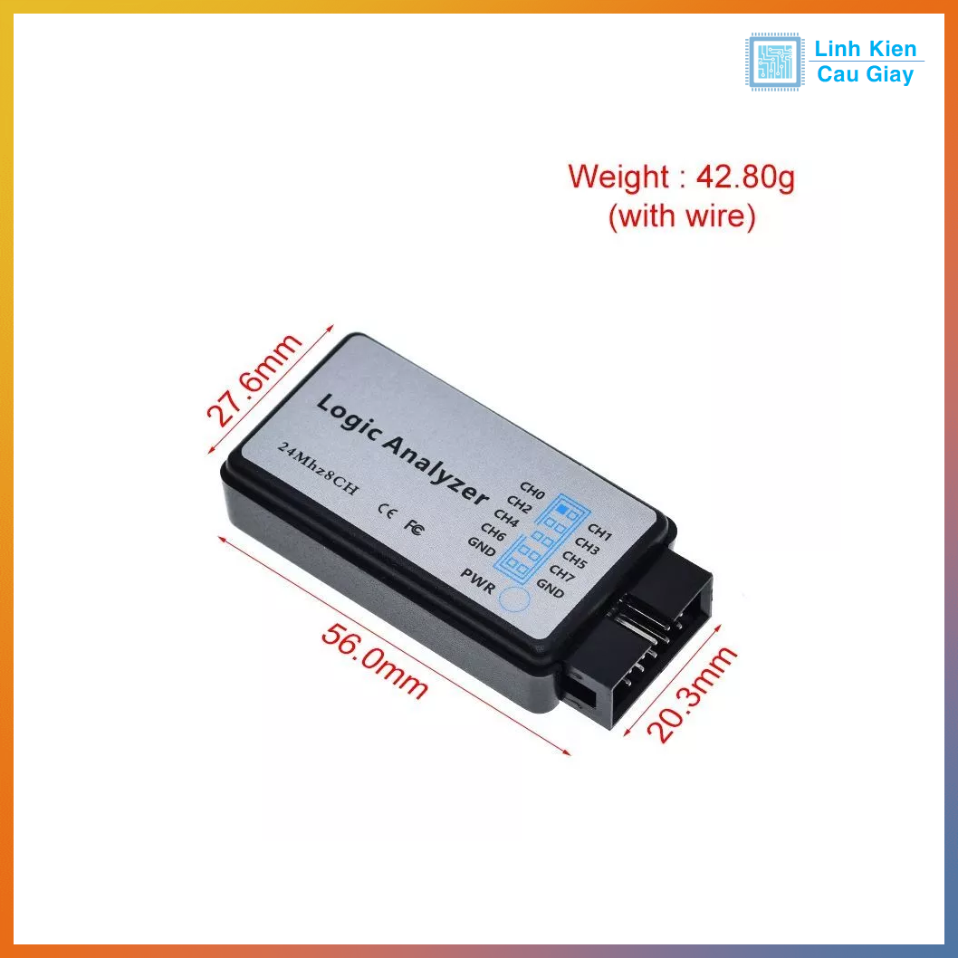 Mạch gỡ lỗi USB 8 kênh Debug 24M là logic analyzer nhỏ gọn, kết nối qua cổng USB, hỗ trợ phân tích tín hiệu số với tần số lấy mẫu tối đa 24MHz. Thiết bị có 8 kênh tín hiệu, tương thích với nhiều chuẩn giao tiếp số như UART, I²C, SPI, CAN, LIN... giúp người dùng dễ dàng theo dõi, bắt lỗi, và phân tích hệ thống vi điều khiển (MCU), ARM Cortex, và FPGA.