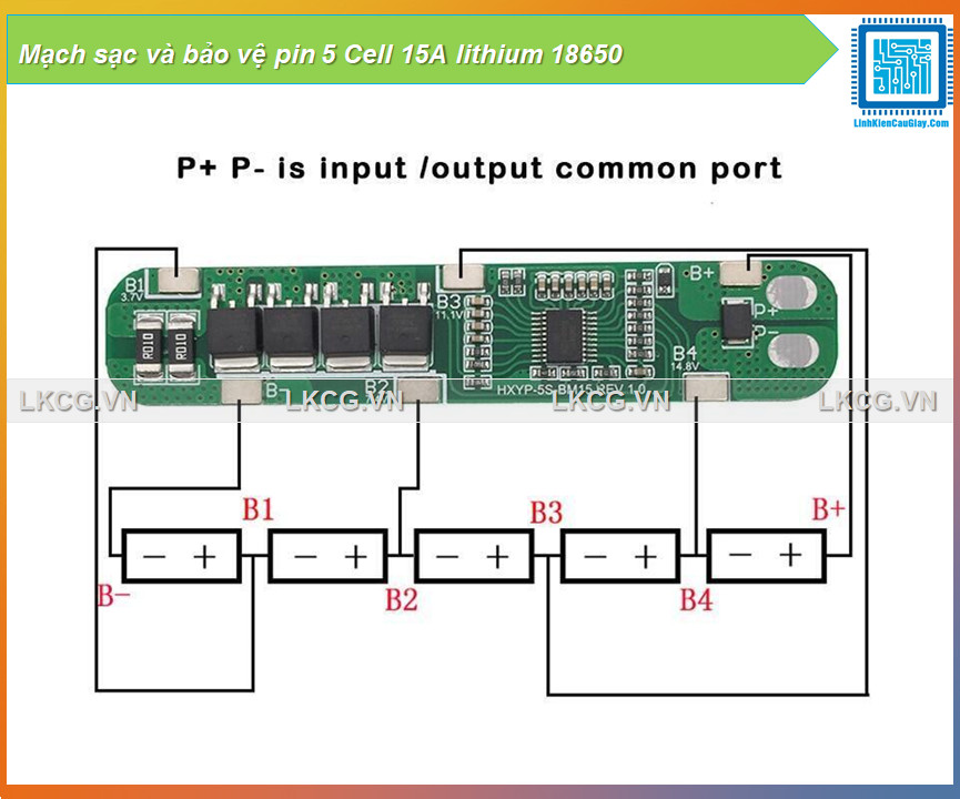 Bo mạch bảo vệ với bảo vệ quá tải, bảo vệ quá xả, bảo vệ quá dòng, bảo vệ ngắn mạch.