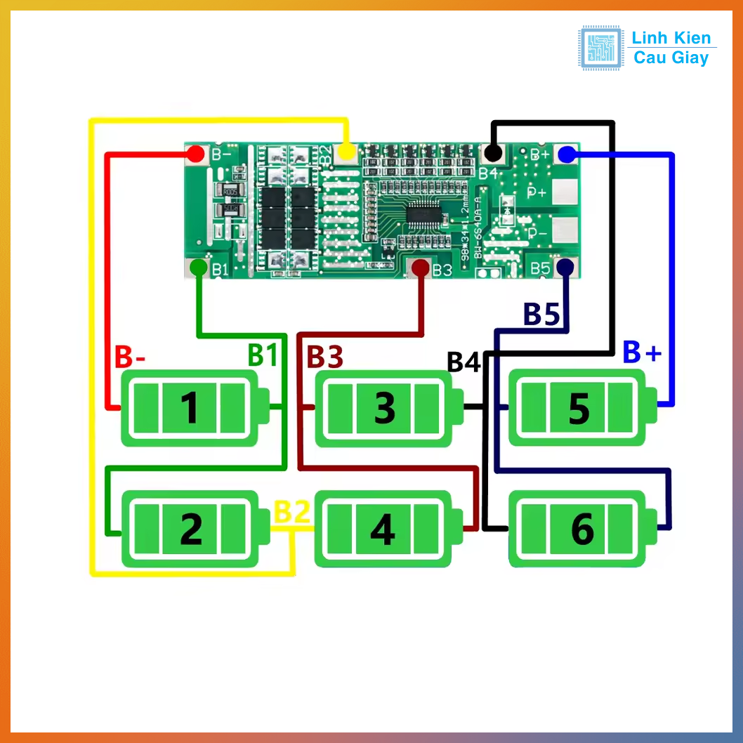 - Hàn theo thứ tự từ B- (0V), B1 ( 3.7V/4.2V), B2 (7.4V/8.4V), B3 (11.1V/12.6V), B4 (14.4V/16.8V), B5 (18.5V/21V) và B+ (21.6V/25.2V).