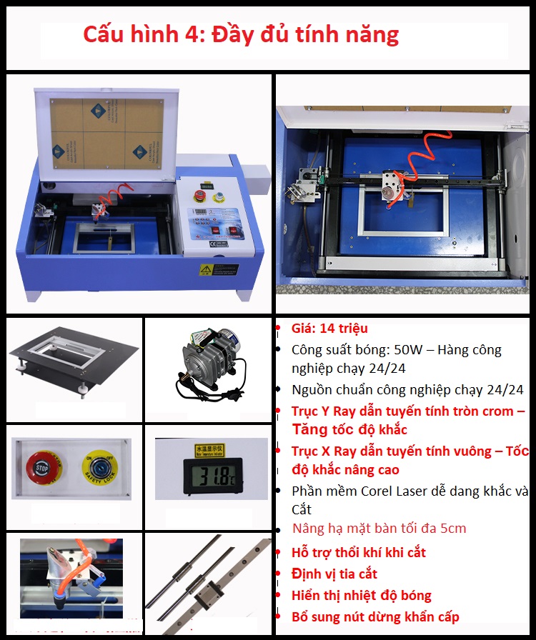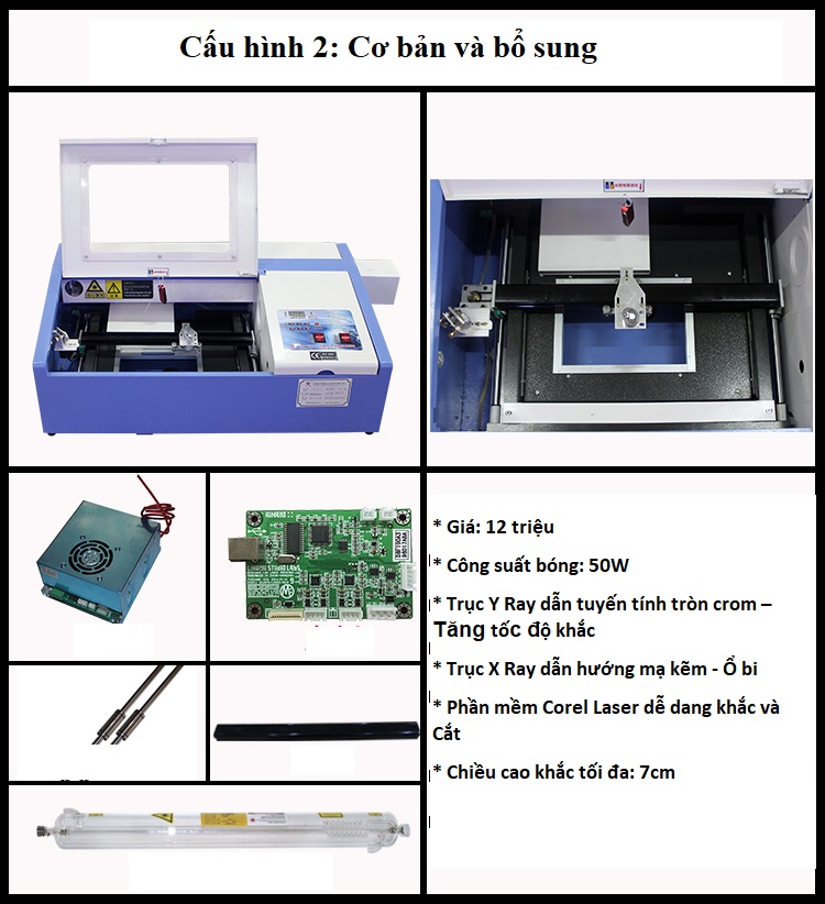 Máy cắt khắc Laser CO2 2030 40W, 50W