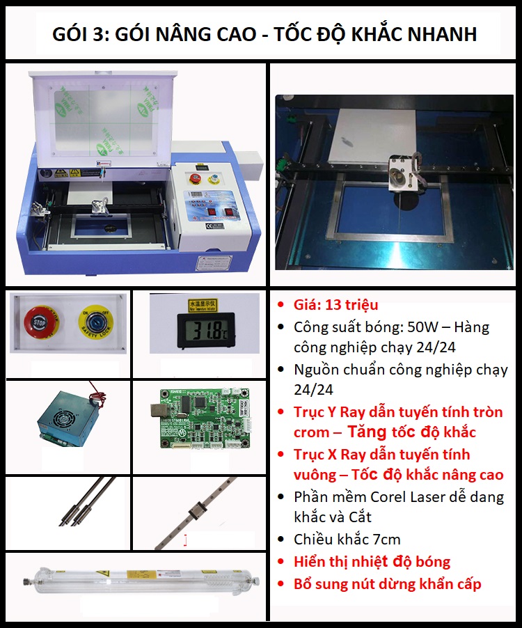 * Bóng cao áp chất lượng cao , kéo dài cho tuổi thọ của ống laser.