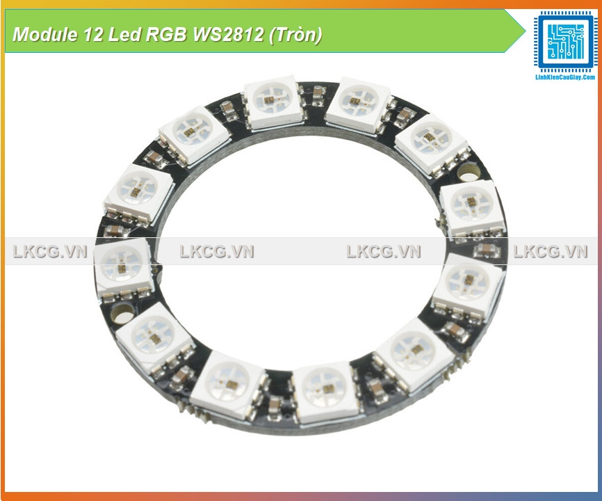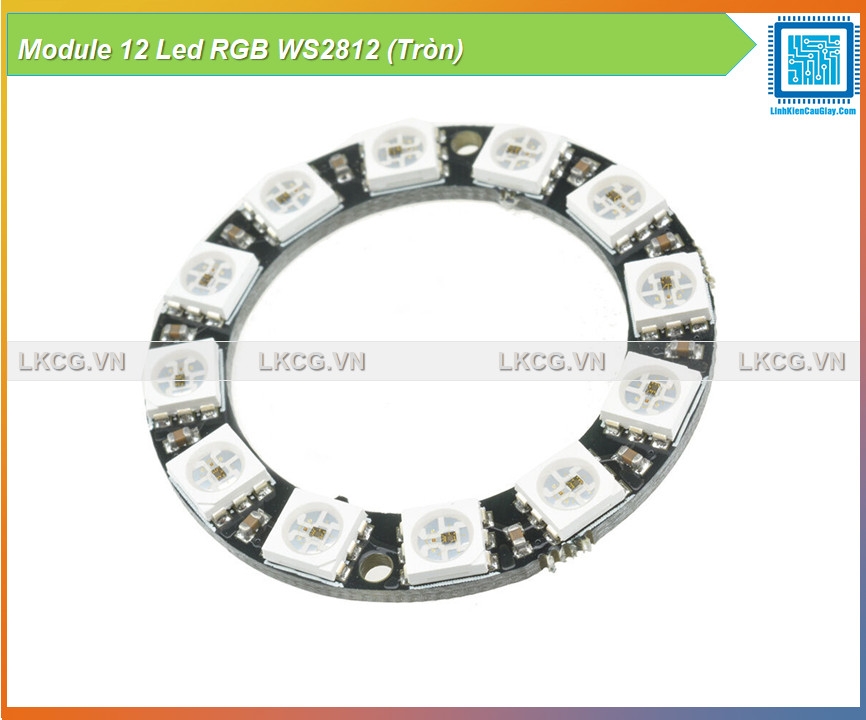 bao gồm 12 LED RGB 5050 đầy đủ màu sắc giao tiếp nối tiếp qua chuẩn giao tiếp 1 wire (chỉ cần 1 cổng IO để điều khiển nhiều đèn LED), mạch rất dễ sử dụng với bộ thư viện hỗ trợ đi kèm với khả năng hiển thị của mỗi LED lên đến 160.000 màu và 256 cấp độ sáng khác nhau, phù hợp cho các ứng dụng trang trí, hiển thị: đồng hồ led, vòng đeo tay led,…