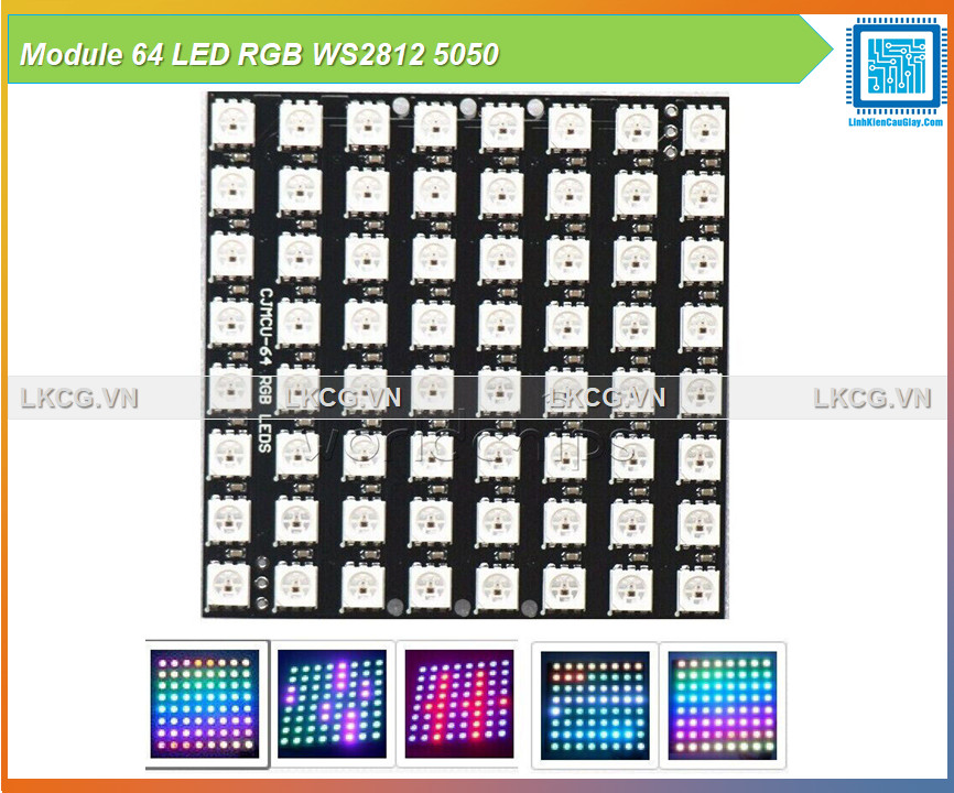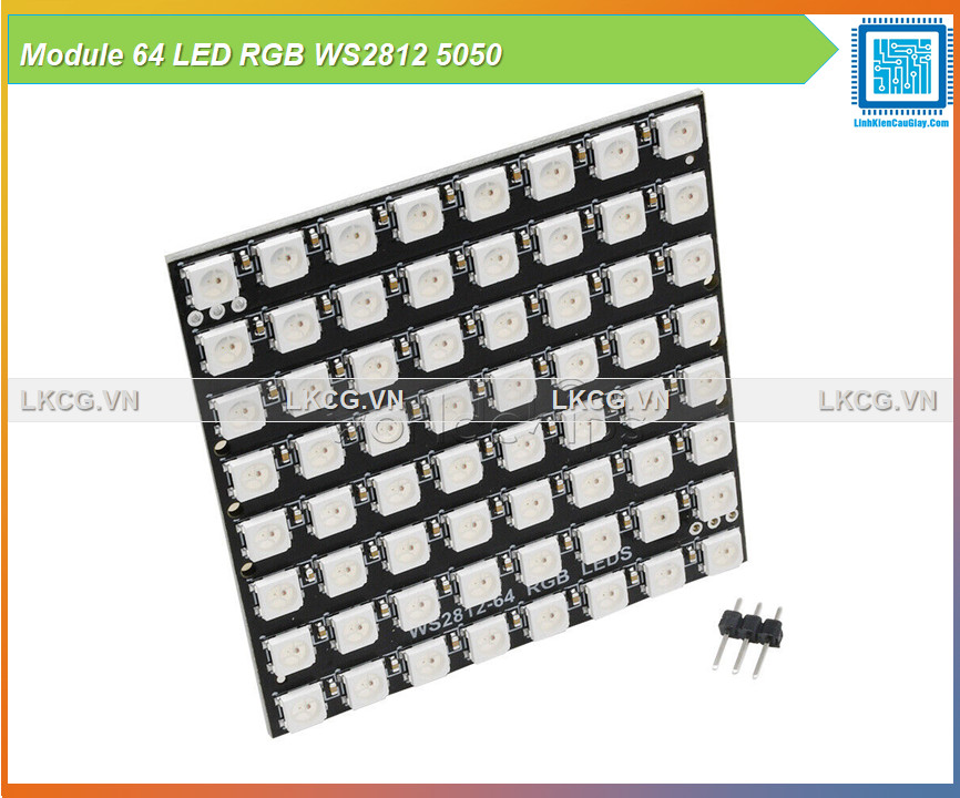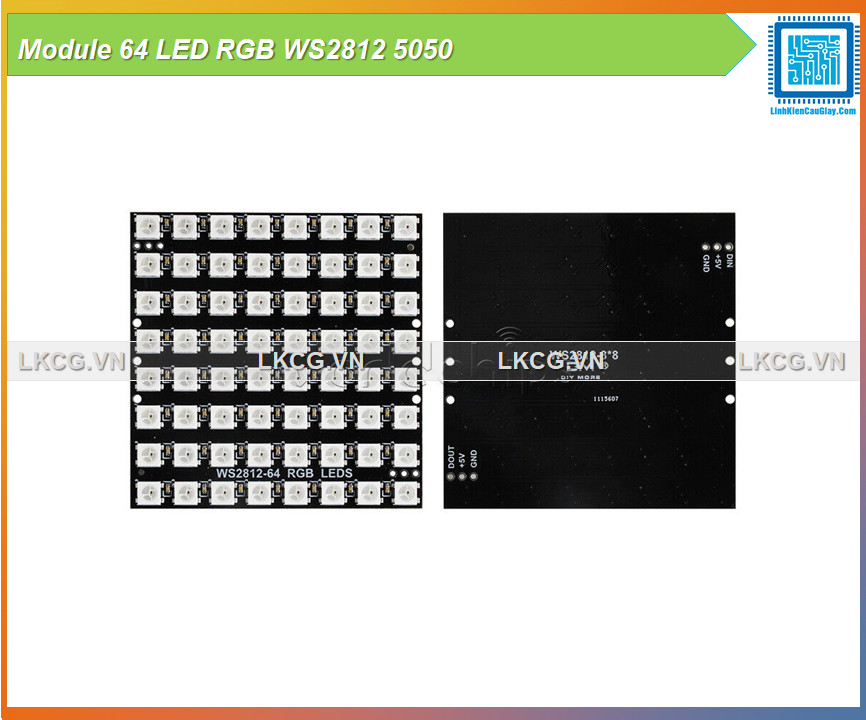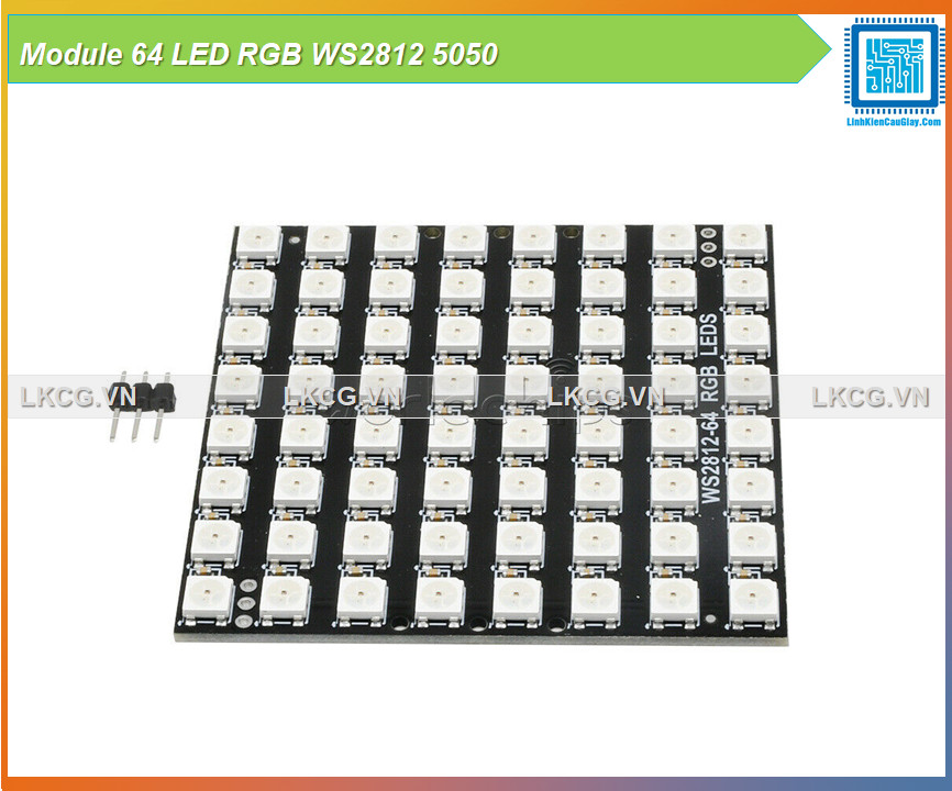 bao gồm 64 Led RGB 5050 thẳng hàng giao tiếp nối tiếp qua chuẩn giao tiếp 1 wire (chỉ cần 1 cổng IO để điều khiển nhiều đèn LED), mạch rất dễ sử dụng với bộ thư viện hỗ trợ đi kèm với khả năng hiển thị của mỗi LED lên đến 160.000 màu và 256 cấp độ sáng khác nhau, phù hợp cho các ứng dụng trang trí, hiển thị led...