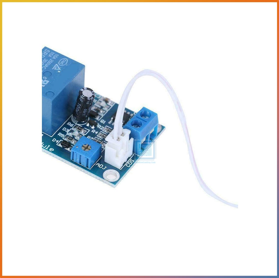 Công tắc cảm biến ánh sáng Relay là mạch dùng để bật thiết bị tự động khi trời tối, và tắt khi trời sáng. Mạch có thế kế để cho đầu cảm biến quang trở cách xa phần relay, giúp lắp đặt dễ dàng nhất để đón ánh sáng. Ngoài ra mạch cảm biến ánh sáng có thể điều chỉnh được độ nhạy thông qua biến trở tích hợp sẵn trên mạch