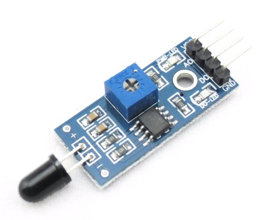 Module cảm biến phát hiện lửa (Flame Sensor) là thiết bị sử dụng diode quang nhạy hồng ngoại hoặc phototransistor để phát hiện tia hồng ngoại do ngọn lửa phát ra. Cảm biến có khả năng nhận biết ánh sáng trong dải bước sóng khoảng 760nm – 1100nm, cho phép phát hiện lửa hoặc nguồn phát nhiệt từ khoảng cách vài chục cm (tùy cường độ).