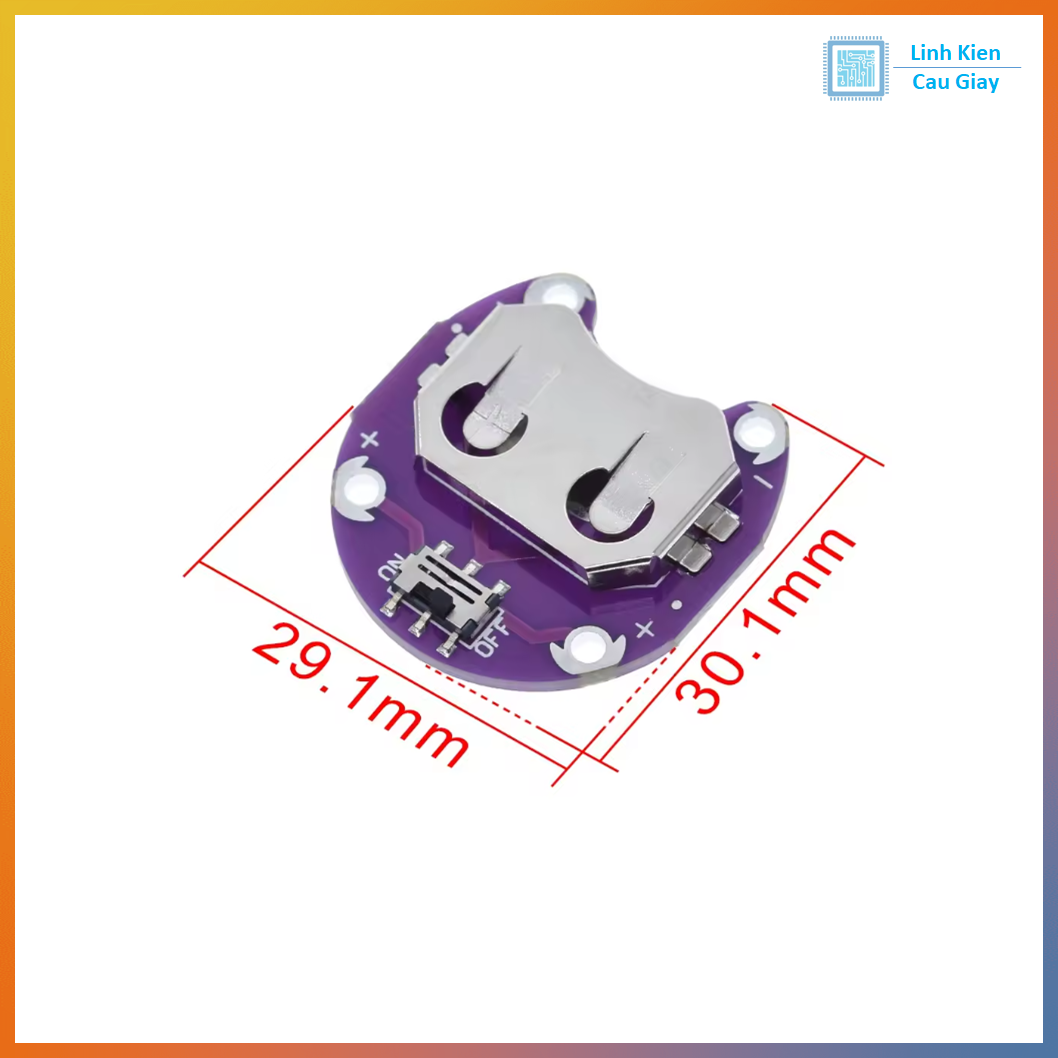 Khe gài pin CR2032 giữ rất chắc, thay pin nhanh; mặt PCB in rõ cực + / – tránh cắm nhầm.