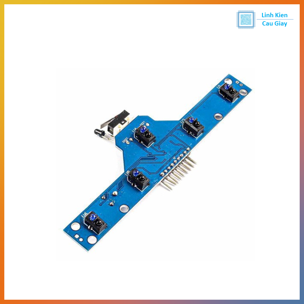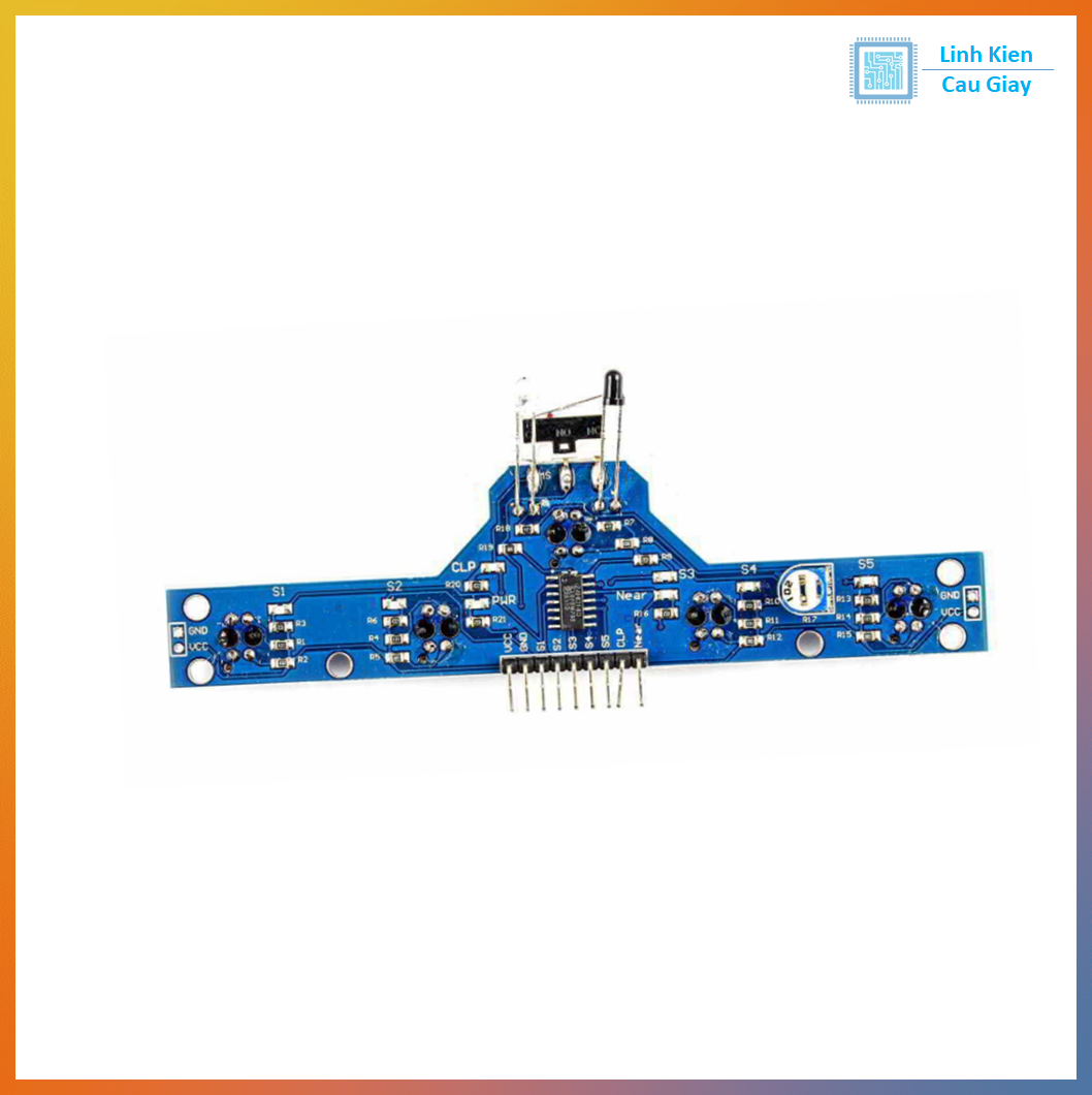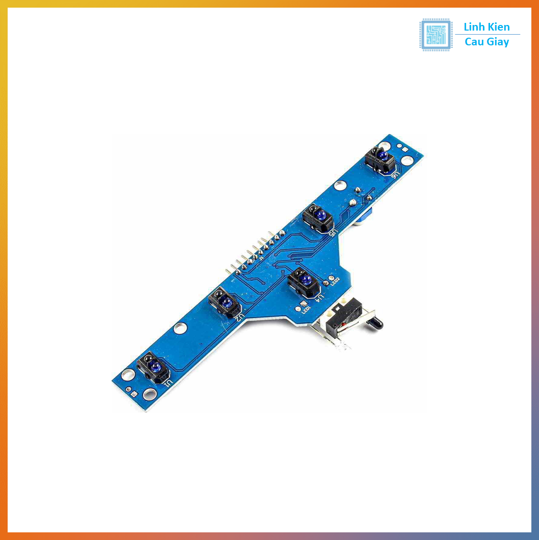 5 mắt hồng ngoại (IR reflective) sắp xếp hàng ngang giúp nhận biết vị trí vạch line (trắng/đen) để hiệu chỉnh hướng.