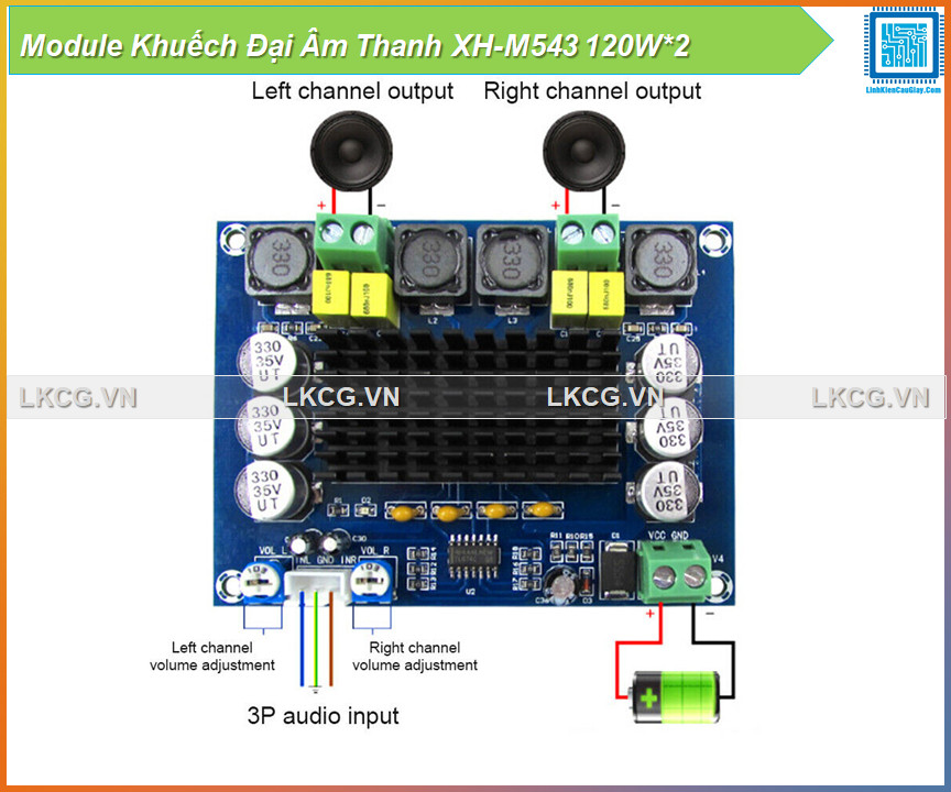 + MẠCH KHUẾCH ĐẠI ÂM THANH KỸ THUẬT SỐ XH - M543, VỚI CHIP KHUẾCH ĐẠI TPA3116D2, ĐẦU RA 2 KÊNH 2 x 120W, ÂM THANH CLASS D. LÀ MODULE VỪA TẦM VỚI CÁC SẢN PHẨM TỰ CHẾ DIY, HOẠT ĐỘNG ỔN ĐỊNH, ÂM THANH TRUNG THỰC, GIÁ THÀNH RẺ.
