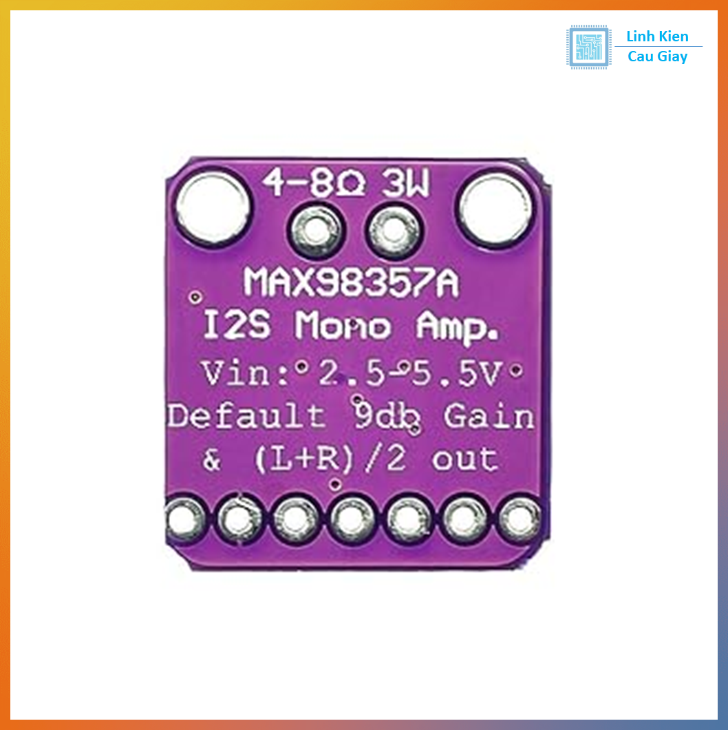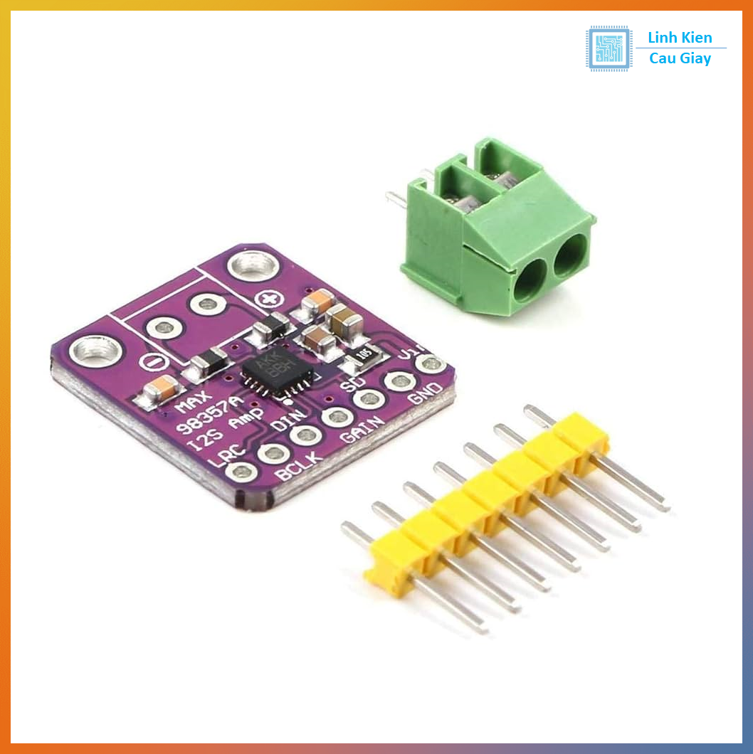 MAX98357 là module mạch khuếch đại âm thanh Class D tích hợp giao tiếp I2S (Inter-IC Sound), cho phép phát trực tiếp tín hiệu số từ vi điều khiển sang loa mà không cần DAC ngoài.