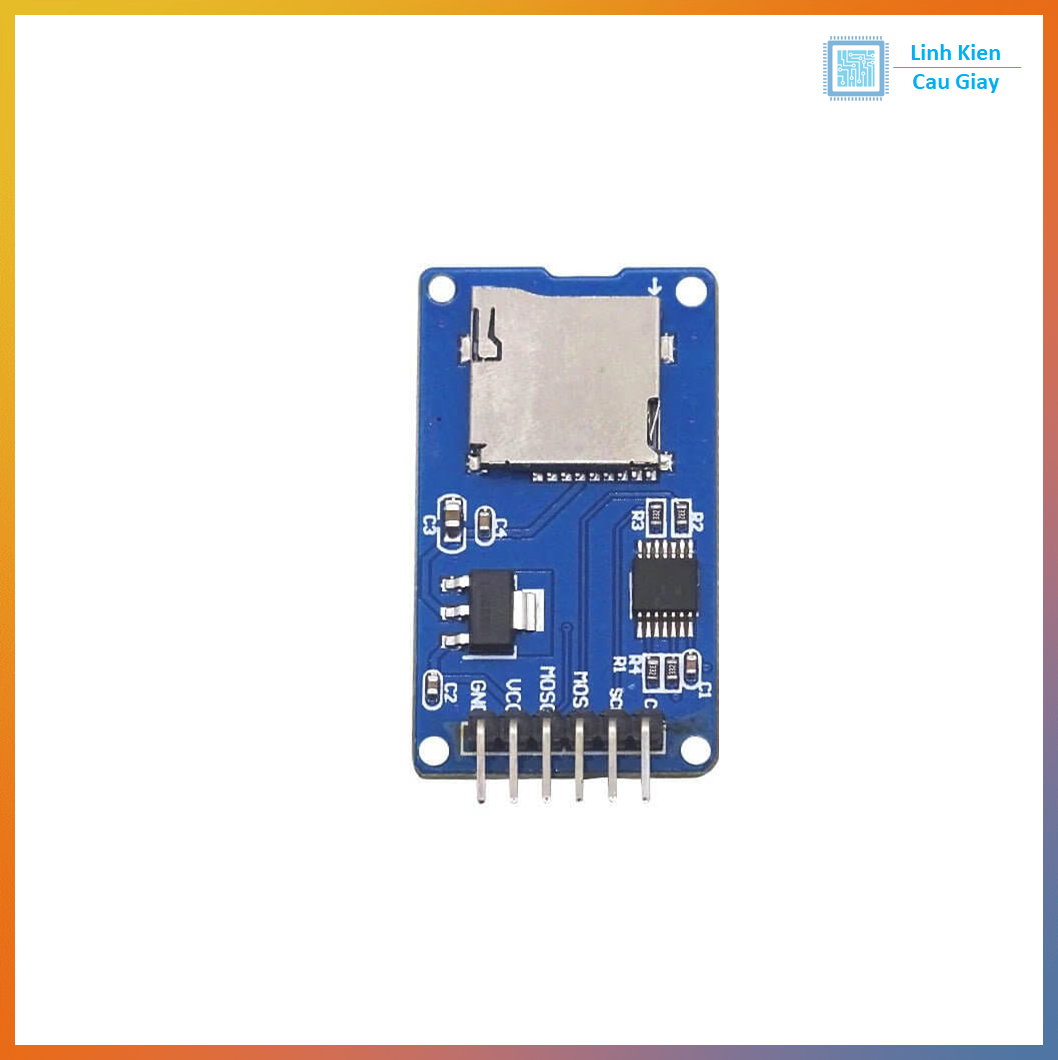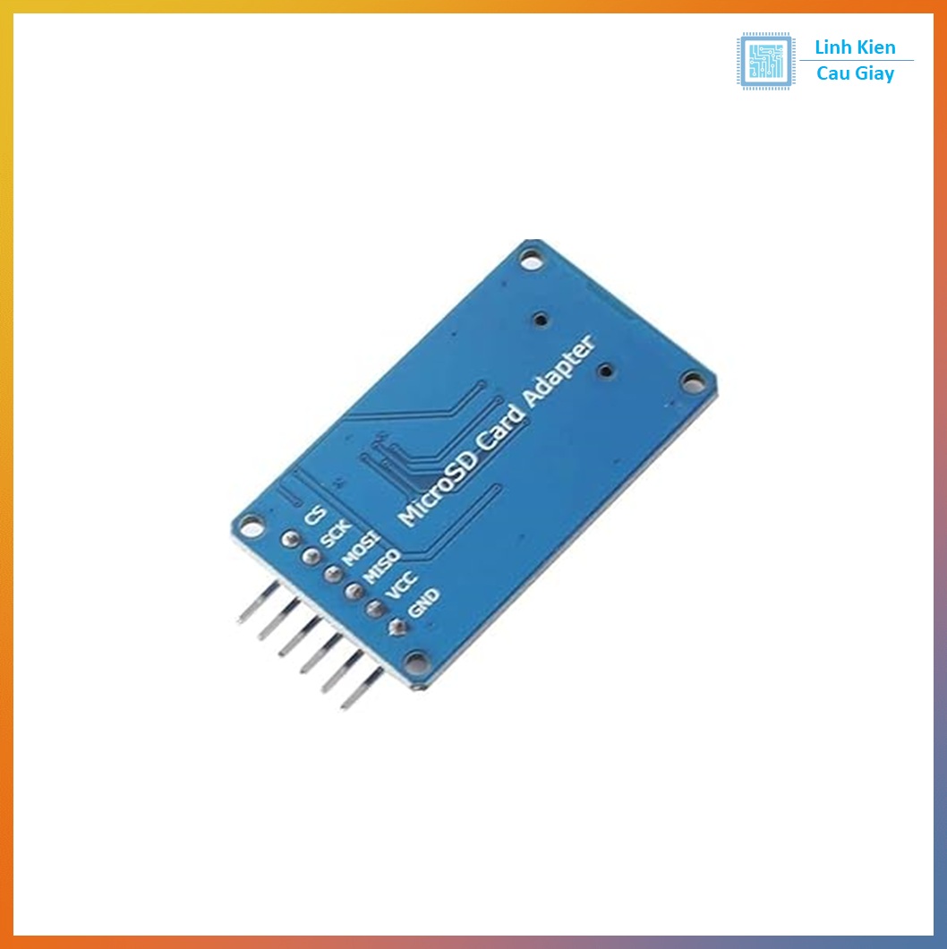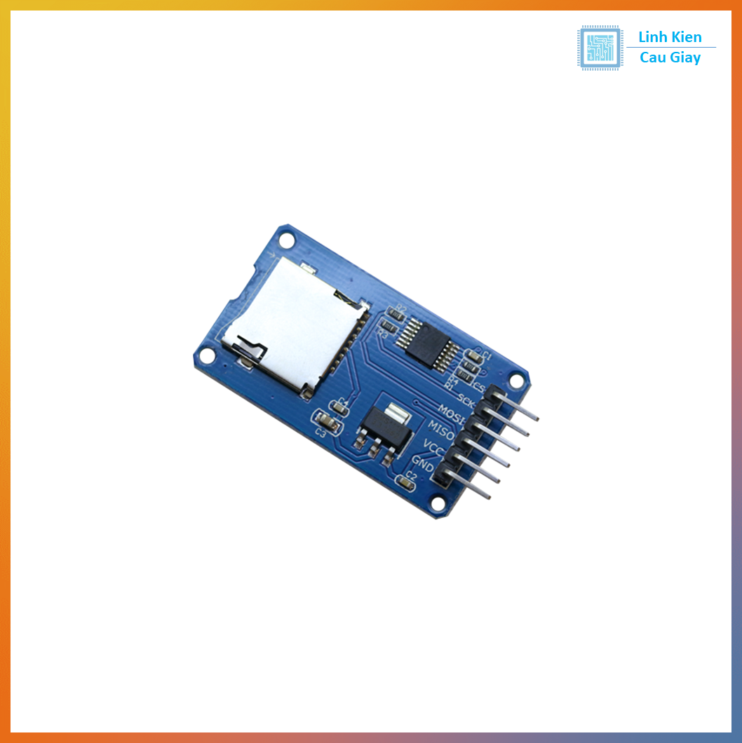 Module MicroSD sử dụng chuẩn SPI (MISO, MOSI, SCK, CS) để giao tiếp với vi điều khiển.