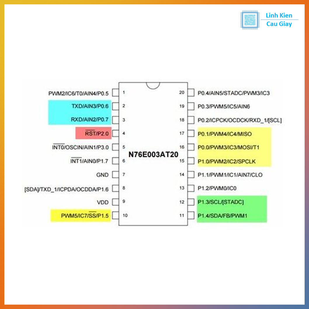 #N76E003AT20 #Nuvoton #vi_điều_khiển_8051 #8051_MCU #IC_TSSOP20 #linh_kiện_điện_tử #linh_kiện_cầu_giấy #lkcg_vn #MCU_8051 #IC_nuvoton #vi_điều_khiển