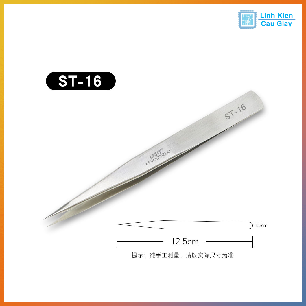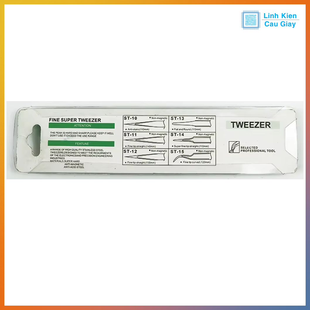 Nhíp Inox thép không gỉ (ST Series: ST10 – ST17) là dụng cụ chuyên dụng để kẹp, gắp linh kiện điện tử, vi mạch, chi tiết nhỏ trong sửa chữa và lắp ráp. Sản phẩm được chế tạo từ thép không gỉ (Inox), chống ăn mòn, độ bền cao, đầu nhíp được mài nhọn/tinh chỉnh chính xác, giúp thao tác thuận tiện ngay cả với những chi tiết siêu nhỏ.