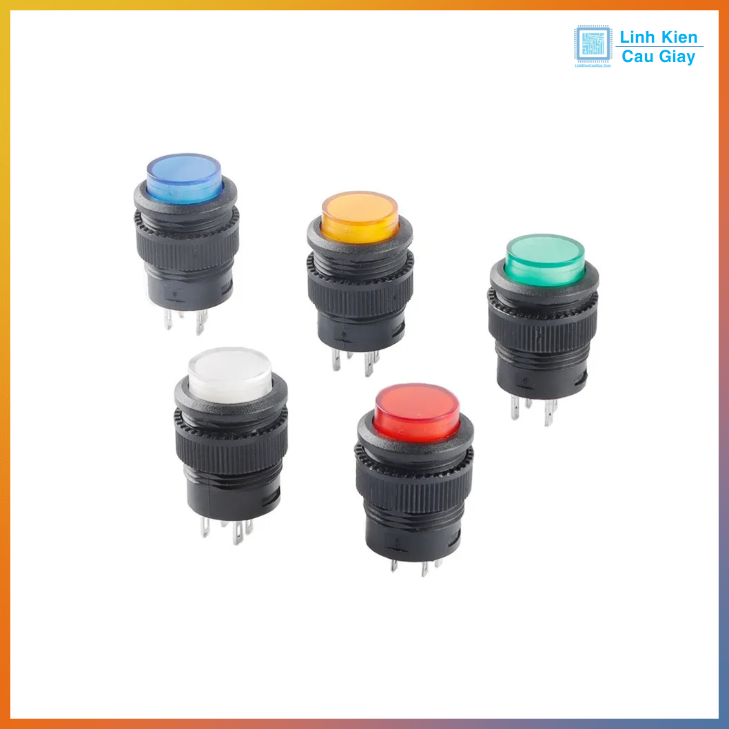 Nút nhấn R16-503 nhấn nhả nhấn giữ công tắc đóng mở tự khóa có đèn 3A/250V lỗ 16MM Đèn báo hiệu sáng đỏ, xanh