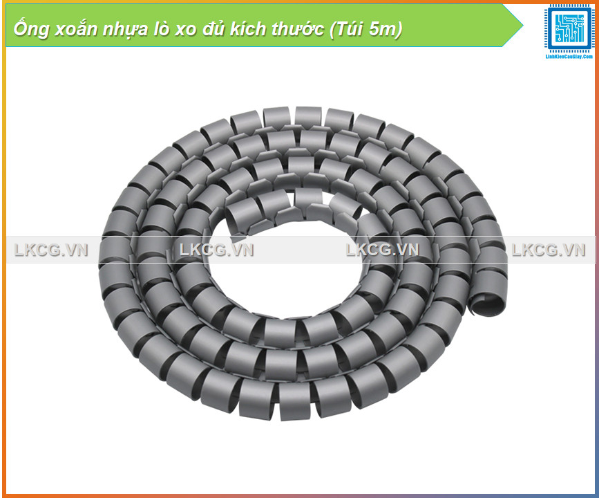 Ống xoắn quấn gọn dây cáp cho phép người dùng bó cáp nhanh chóng, một cách hiệu quả và dễ dàng với dụng cụ hỗ trợ luồn dây cáp vào ống. có sẵn màu ghi Có tác dụng bảo vệ dây điện khỏi bị chuột, bọ cắn dây, ngoài ra nó còn có tác dụng bảo vệ và giúp dây điện gọn gàng và ngăn lắp Ngăn bụi bám vào dây cáp và dây điện.