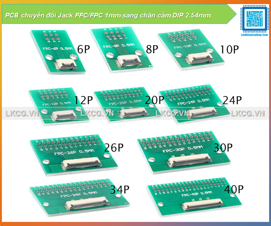 PCB chuyển đổi Jack FFC/FPC 1mm sang chân cắm DIP 2.54mm