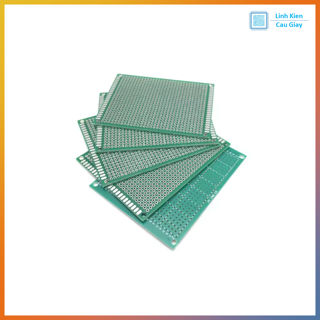 Bề mặt phủ đồng 1 mặt, được đục lỗ sẵn theo lưới 2.54mm, phù hợp hàn hầu hết linh kiện chân cắm DIP: IC, điện trở, tụ, diode, header, module…