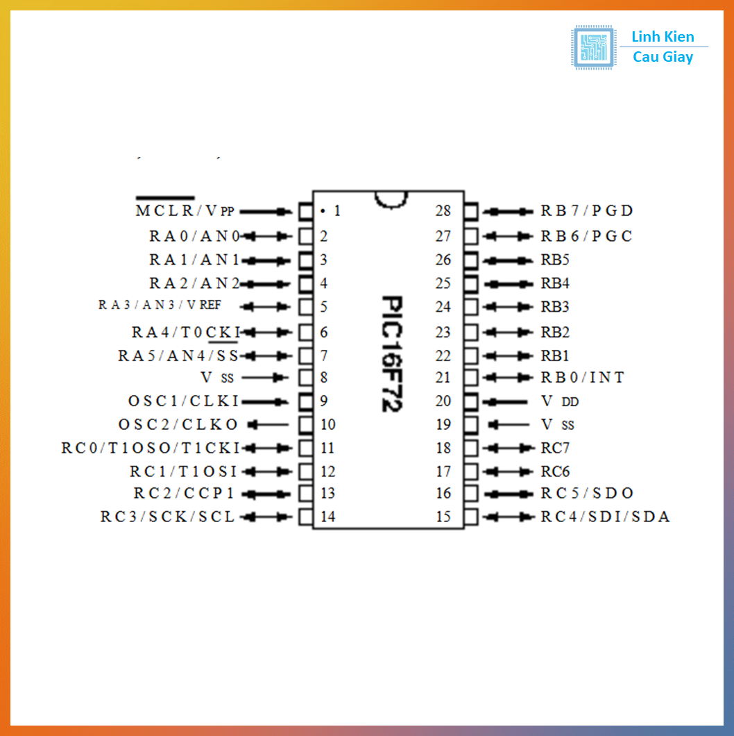 Đây là phiên bản SMD của dòng PIC16F72 (so với bản DIP-28), được sử dụng rộng rãi trong công nghiệp nhờ tính ổn định, bền bỉ và dễ lập trình.