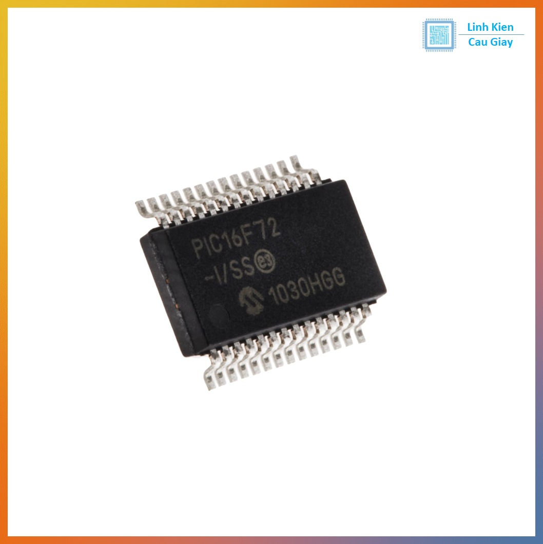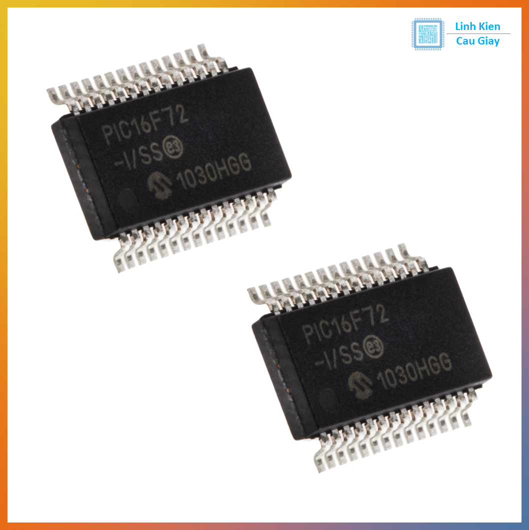 PIC16F72-I/SS là vi điều khiển 8-bit kiến trúc RISC PIC16 của Microchip, đóng gói SSOP-28 (SMD) tiết kiệm diện tích PCB, phù hợp cho sản xuất hàng loạt. Chip được trang bị 2K Word Flash (~4KB), 128B SRAM, 128B EEPROM, tốc độ hoạt động tối đa 20MHz, tích hợp nhiều ngoại vi mạnh mẽ: 5 kênh ADC 10-bit, 2 CCP (Capture/Compare/PWM), 3 Timer, Watchdog.