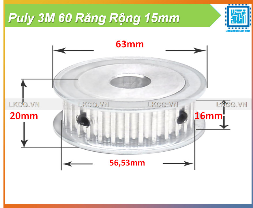 Puly 3M 60 Răng Rộng 20mm Trục 8, 10, 12mm