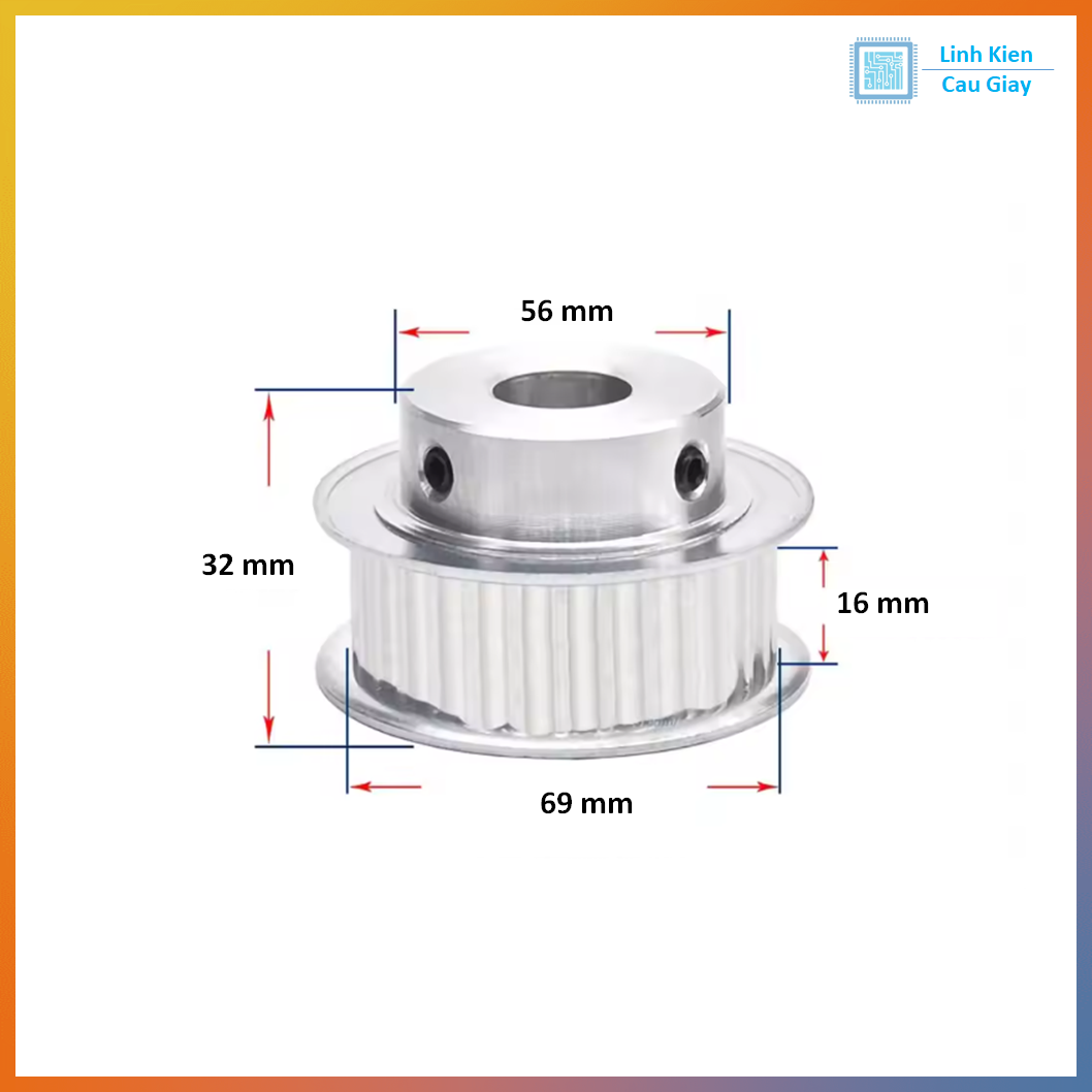 - 44 răng tiêu chuẩn HTD 5M, bước răng 5mm, tương thích dây đai HTD 5M rộng 15mm.