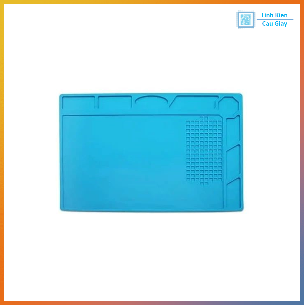 Tấm lót Silicon chịu nhiệt màu xanh là dụng cụ không thể thiếu trong kỹ thuật sửa chữa điện tử, điện thoại, laptop và các thiết bị công nghệ. Được làm từ silicon cao cấp chịu nhiệt, bề mặt có nhiều ngăn nhỏ để chứa linh kiện, ốc vít và dụng cụ, giúp thao tác gọn gàng, an toàn.