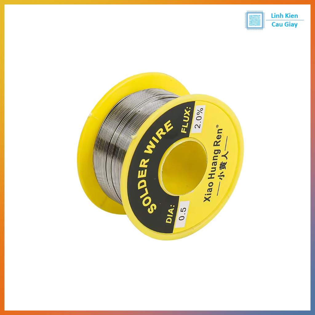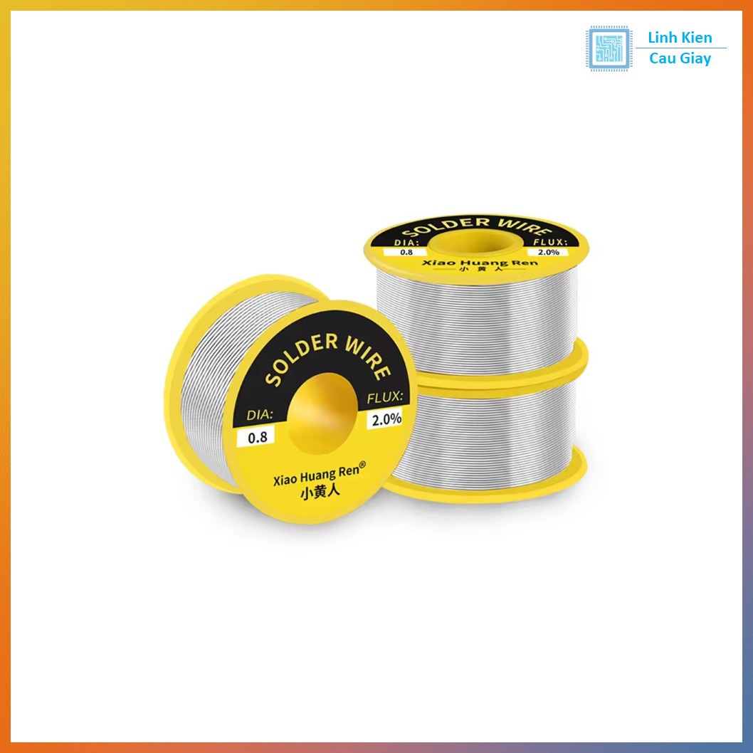 Dây hàn thiếc tỉ lệ 60/40 (60% Sn – 40% Pb), đường kính 0.8mm, bên trong có lõi nhựa thông (rosin) 2.0% giúp thiếc chảy ướt, bám tốt trên pad và chân linh kiện.