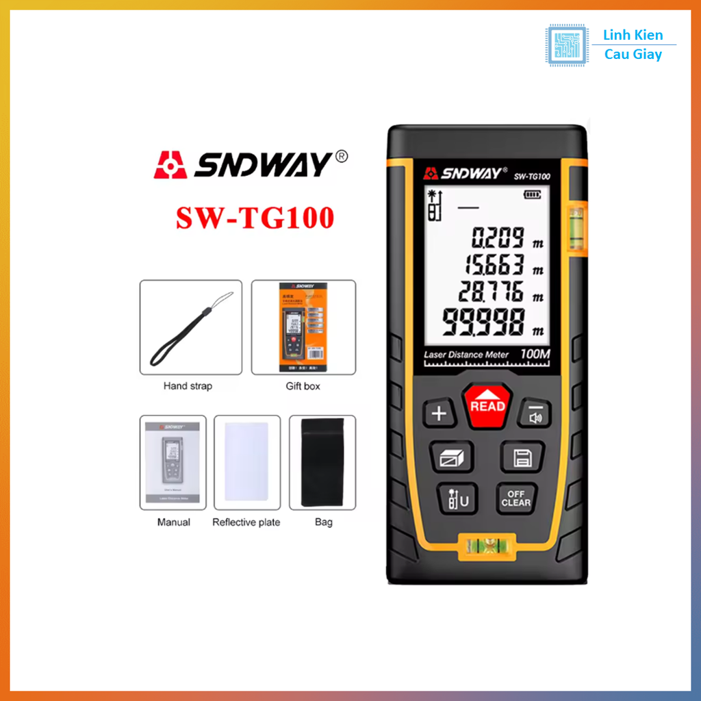 Đồng hồ đo khoảng cách bằng tia laser SNDWAY SW-M50, SW-M100 – đo 50m/100m, tính diện tích, thể tích