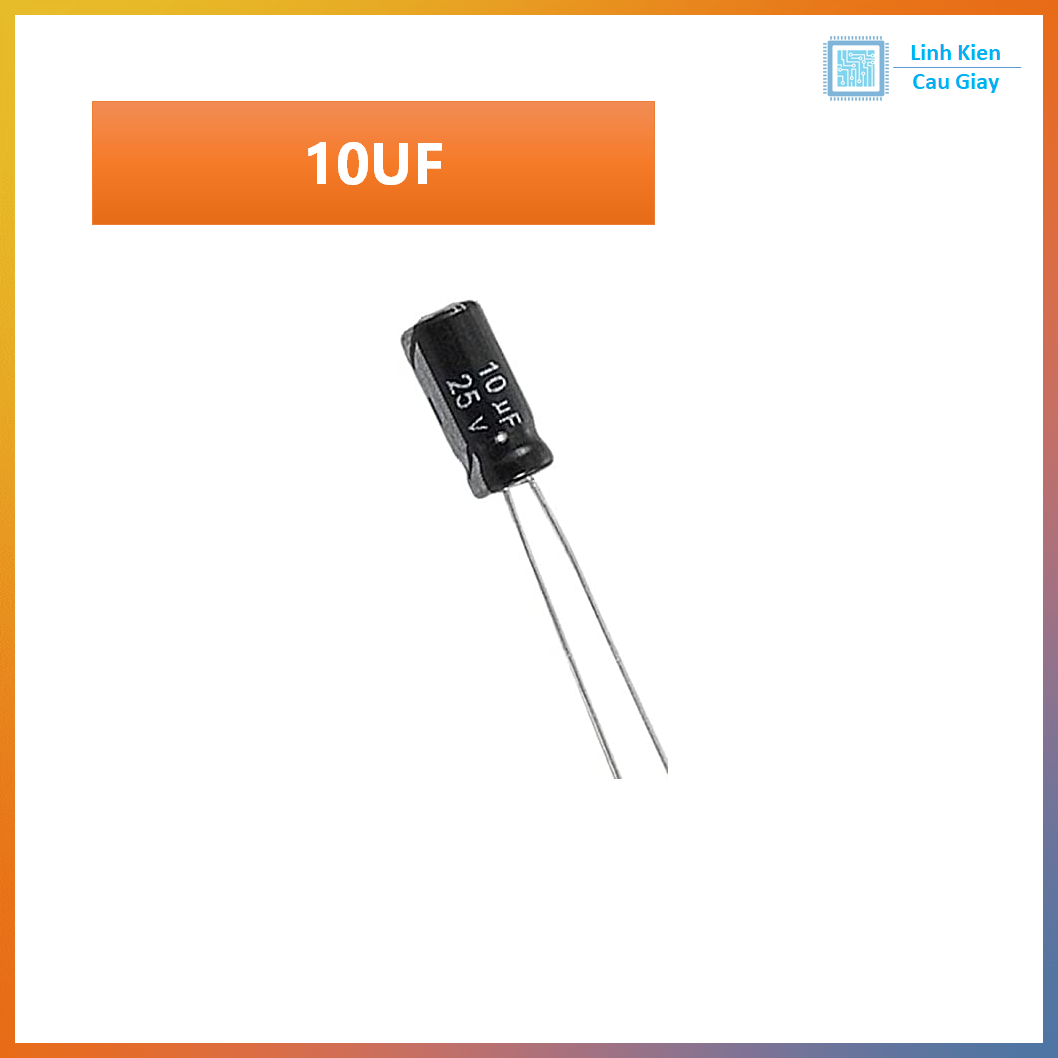Tụ Hóa 10uF là tụ điện phân cực dung lượng nhỏ–trung bình, thường được sử dụng trong các mạch lọc nguồn DC, giảm nhiễu, ổn định tín hiệu và tạo trễ RC.