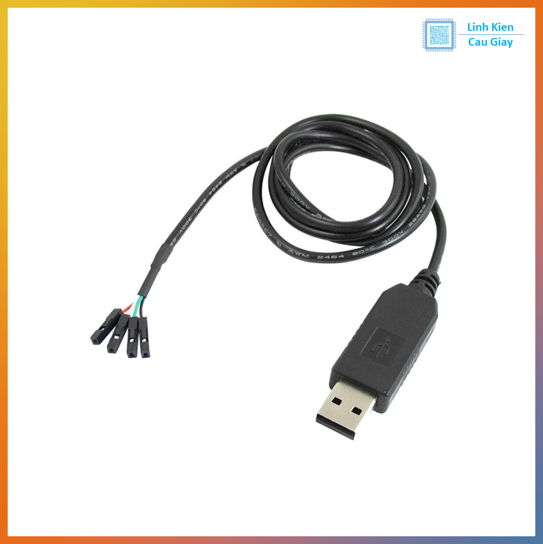 Cáp có sẵn đầu dây tách (TXD, RXD, GND, VCC) tiện kết nối trực tiếp với vi điều khiển hoặc thiết bị điện tử.